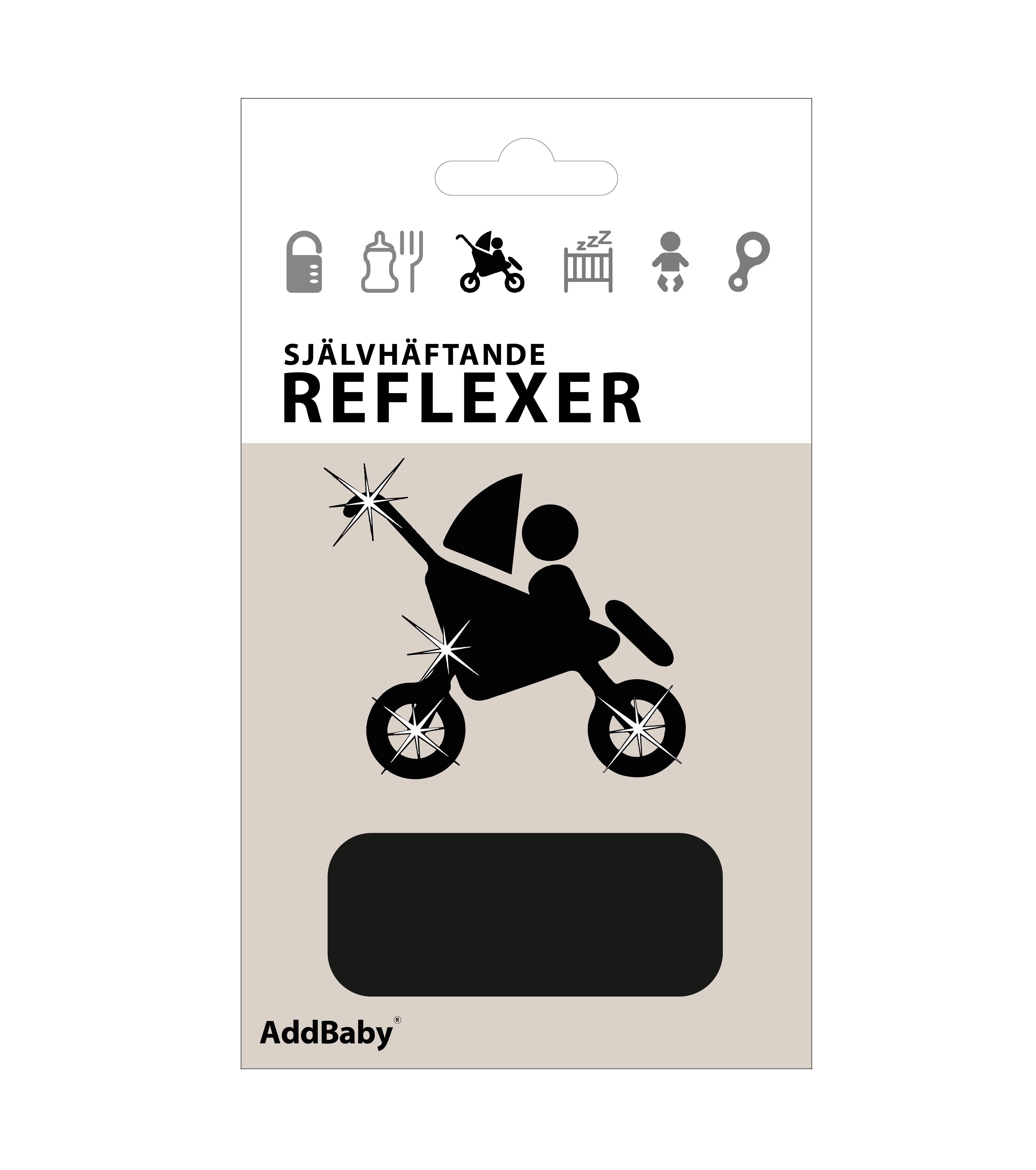 Syns i mörkret! Reflexark av högsta kvalitet med 14st självhäftande svarta reflexer i olika storlekar. Passar perfekt till alla hårda ytor så som barnvagnar, pulkor, cyklar mm.