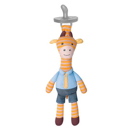 Det broderade ansiktet utstrålar glädje och harmoni och skallran och de fina detaljerna lockar till lek. De smala benen är lätta att greppa för små händer och tygkompisen följer gärna med på äventyr och mysiga vilostunder. Fäst nappen i den kardborreförsedda öglan så hänger både nappen och tygkompisen alltid ihop. Från nyfödd