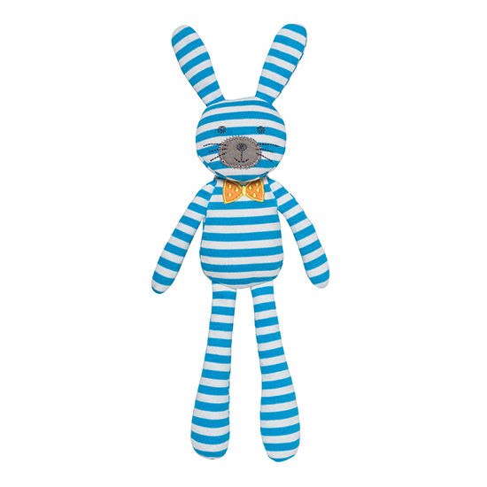 Det broderade ansiktet utstrålar glädje och harmoni. De smala benen är lätta att greppa för små händer och kaninen följer gärna med på äventyr och mysiga vilostunder.