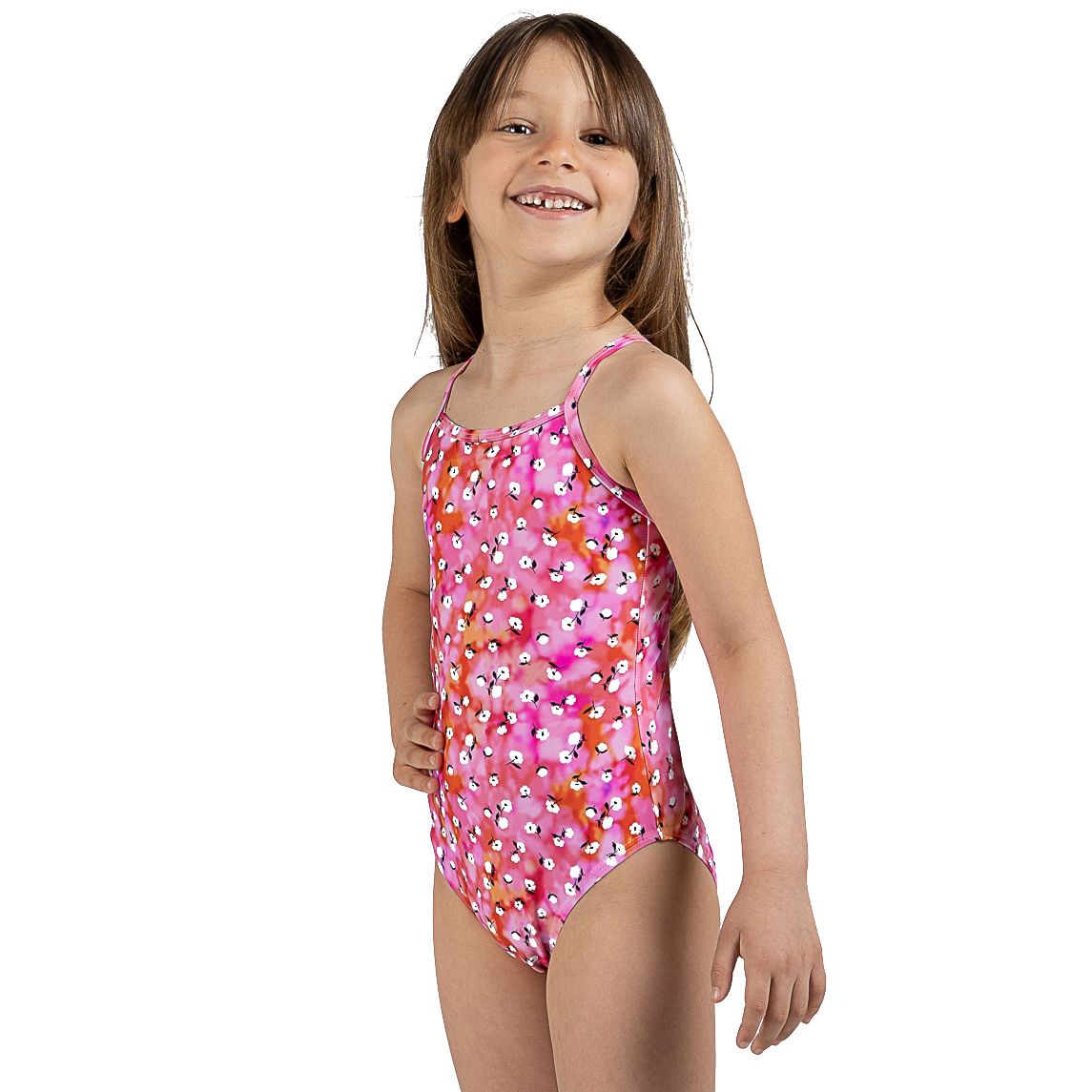 Baddräkt i ett fint småblommigt mönster, idealisk för både träning och lek vid poolen och stranden.