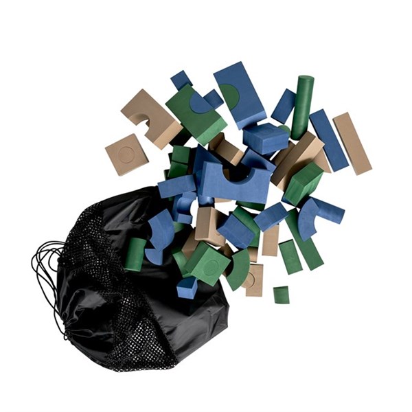 Setet innehåller 75 klossar och en praktisk påse som gör det enkelt att ta med och förvara.
