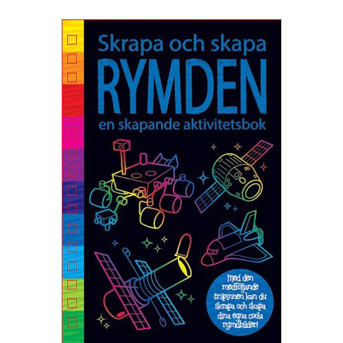 Genom att använda den medföljande träpinnen på specialsidorna skrapas och färgläggs rymdbilder.