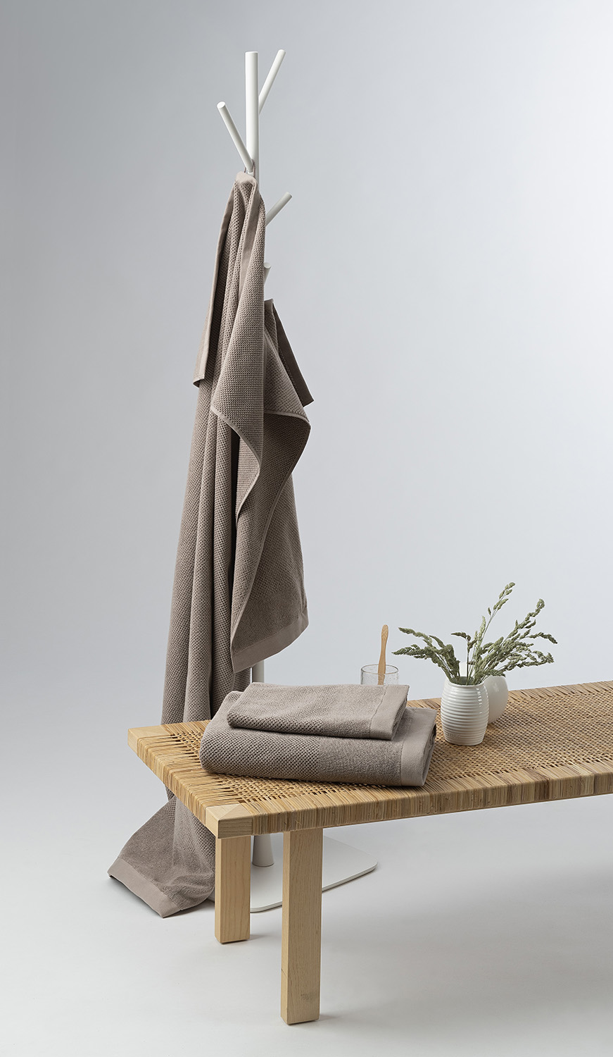 Enzo är en frottéserie i en lugn och naturlig färgskala som passar bra i badrummet.