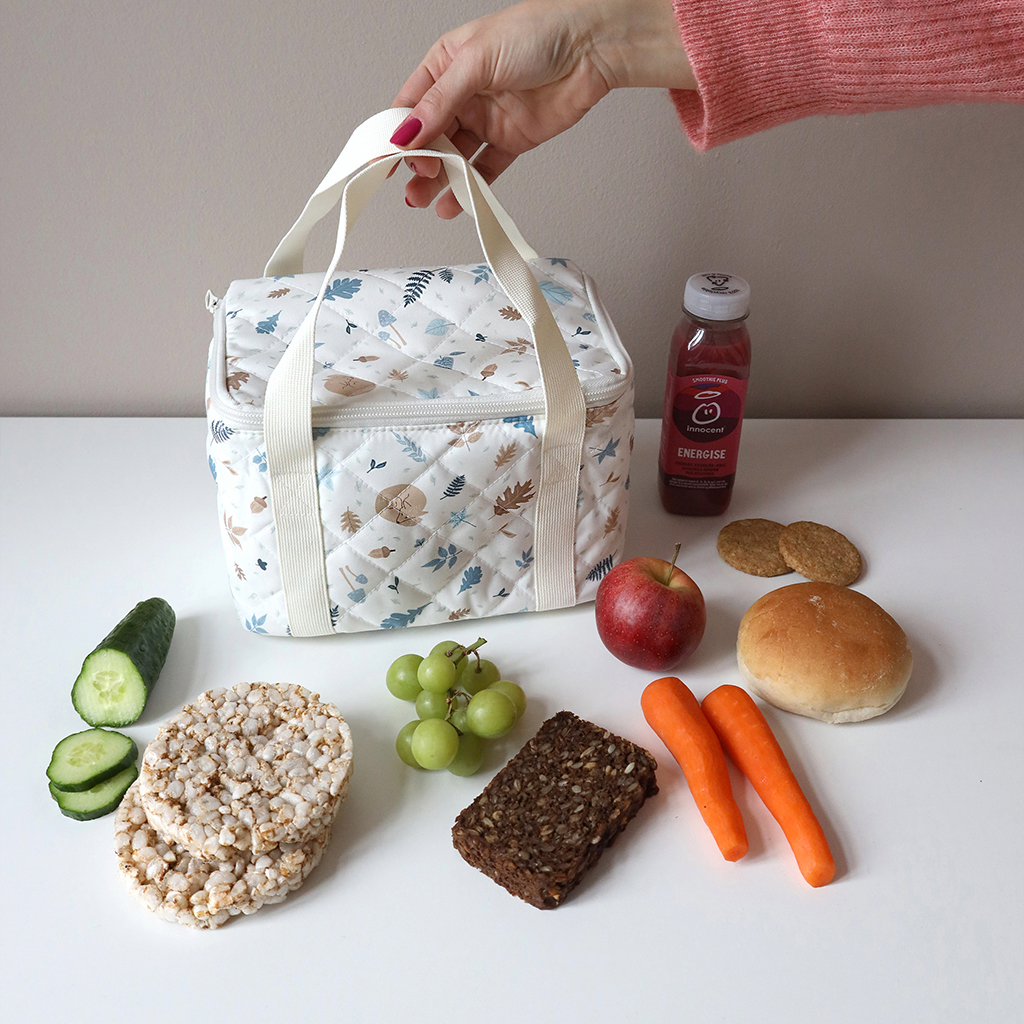 Snygg och praktisk liten kylväska perfekt för matlådan eller lättare tilltugg för familjelivet på språng. Designad med två handtag så det är lätt att bära med sig det nödvändigaste oavsett om det är till skolan, stranden eller en picknick i parken. Väskan kan hålla sig sval i 4+ timmar när väskan ställs i skuggan. Kylarväska i blå och bruna nyanser.