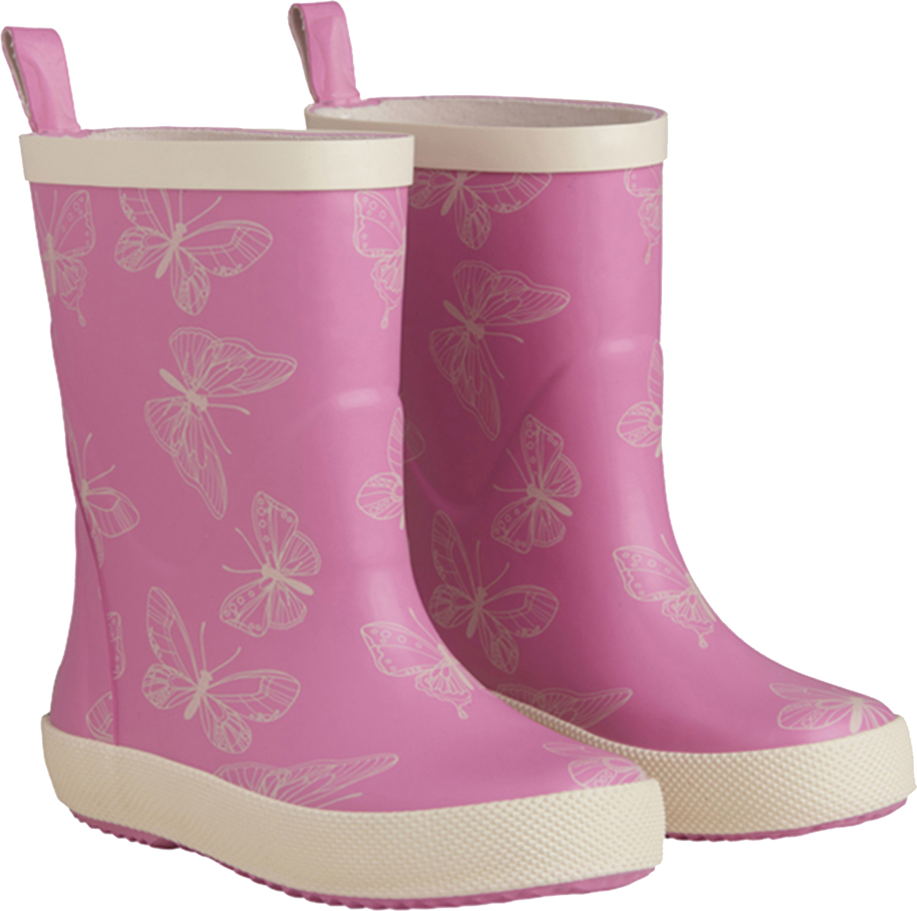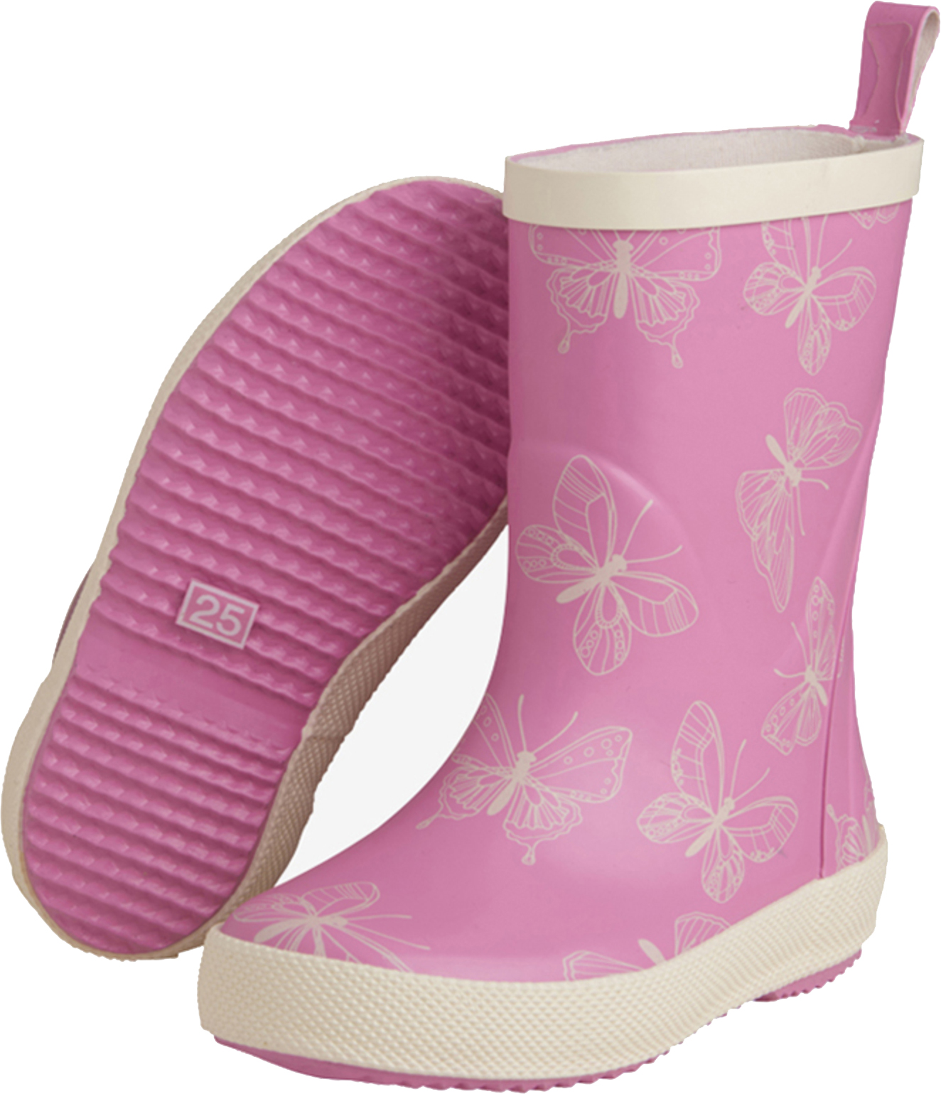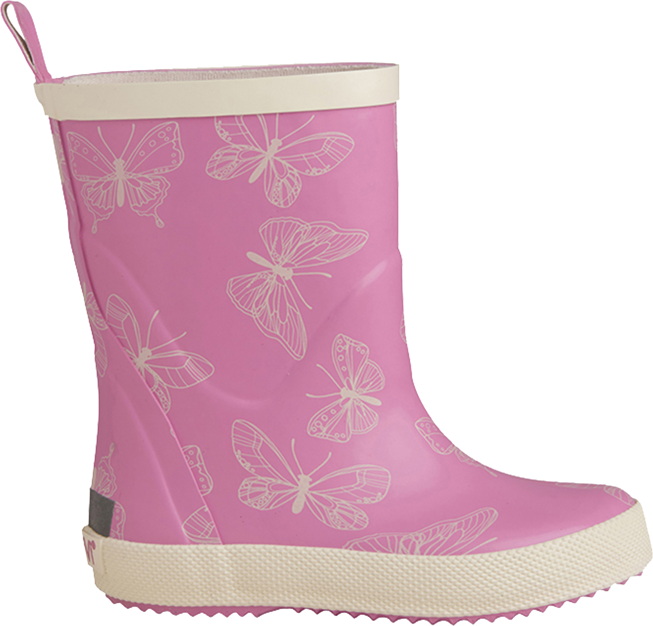 Coola gummistövlar av rent naturgummi. Gummistövlarna har ett heltäckande tryck och en kontrasterande kant nedtill. Sulan är räfflad, så barnet har bra grepp. Rem baktill. Reflexdetaljer på baksidan.