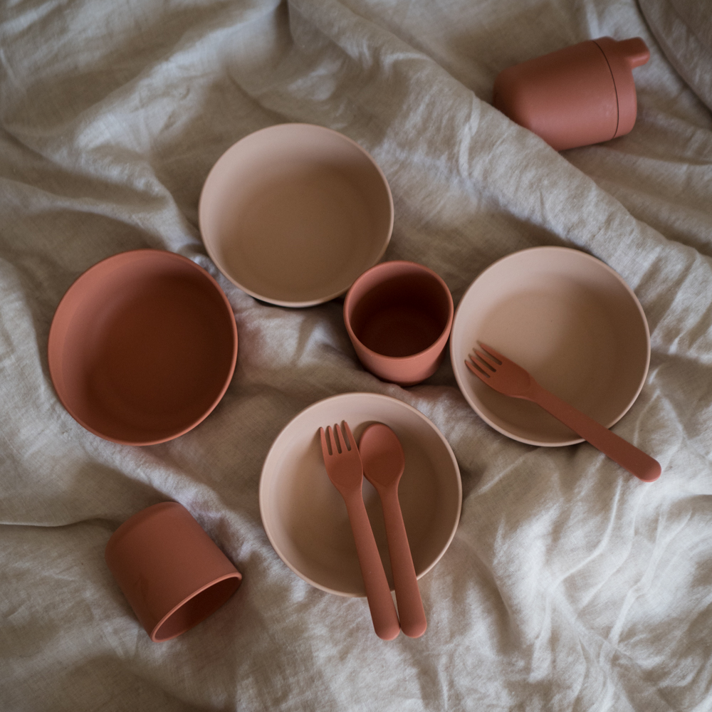 Vår skål är perfekt för dina barnmåltider såväl som för picknick i parken eller för dina egna frukostflingor. För de minsta i familjen är de perfekta att kombinera med matskedarna och sippykoppen. För ditt barn passar de perfekt med småbarnsskeden och 2pack-muggen.