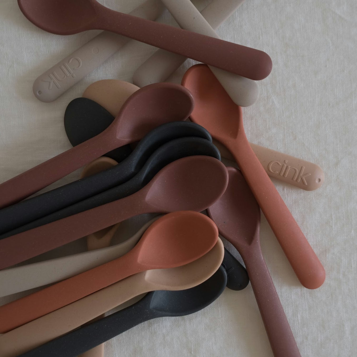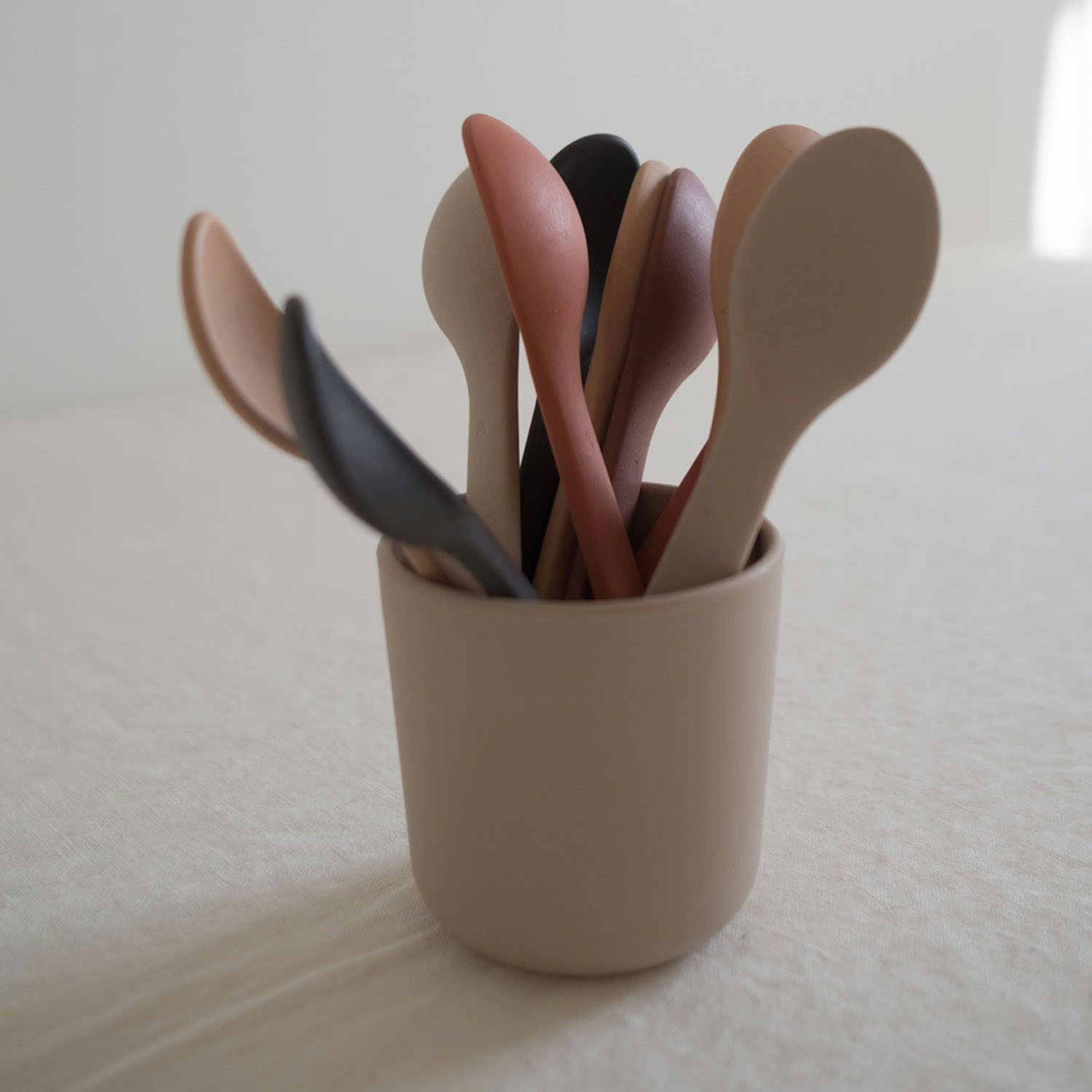 Detta bestickset är idealiskt för barn från 1 år och uppåt. Formen på handtaget ger barnet ett stadigt grepp och gör det lätt att skjuta och spetsa maten.