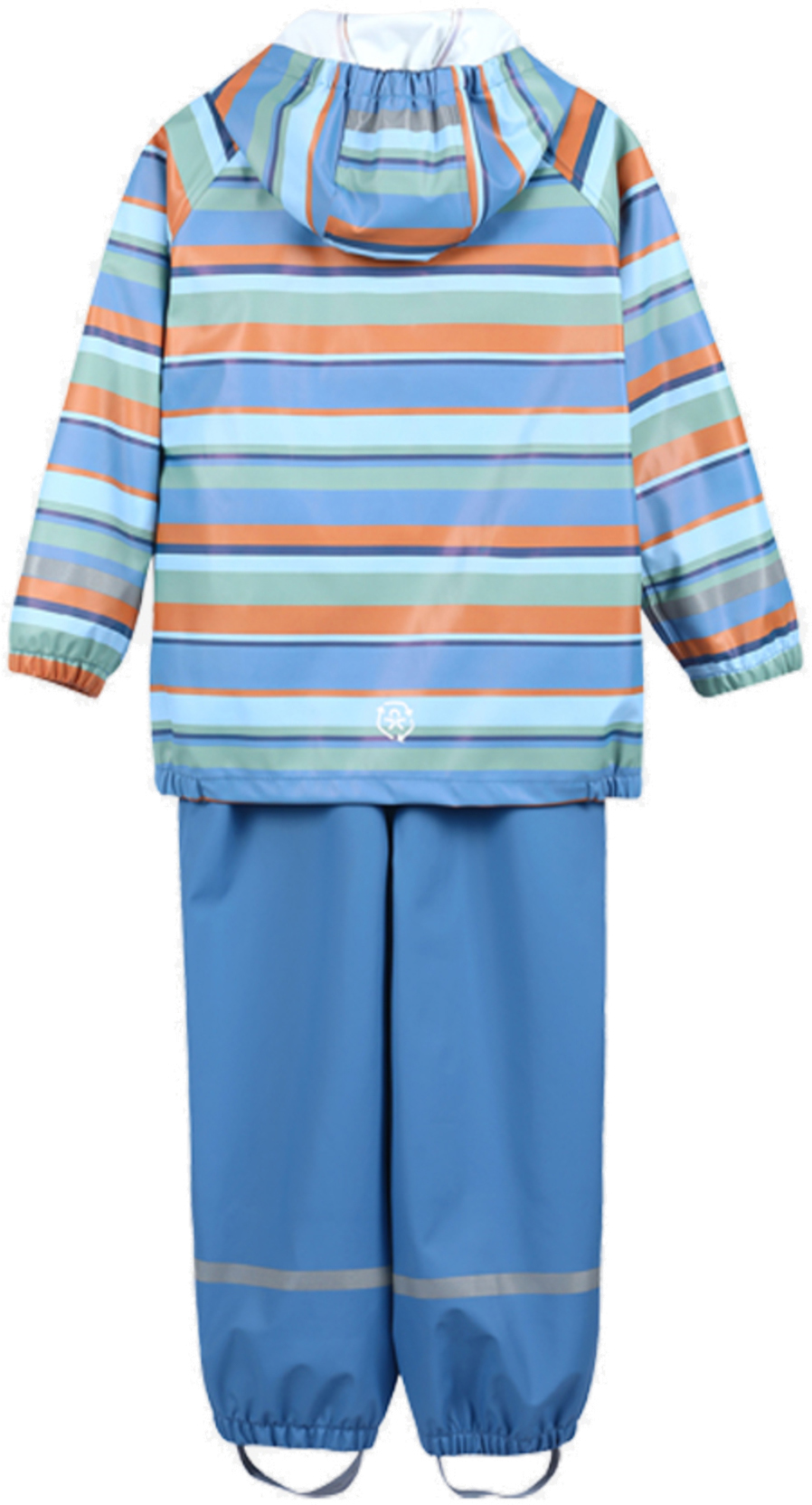 Vårt regnställ är utrustat med reflekterande detaljer för ökad synlighet och säkerhet. Tejpade sömmar garanterar fullständigt vattentät skydd, och med en vattenpelare på 8.000 mm är jackan både vattentät och vindtät. Elastik vid handleder, en avtagbar huva och vackra färgblock med dragkedja framtill gör jackan både praktisk och stilfull. Regnbyxorna är försedda med fotband och elastik vid anklarna och midjan för en säker och bekväm passform.