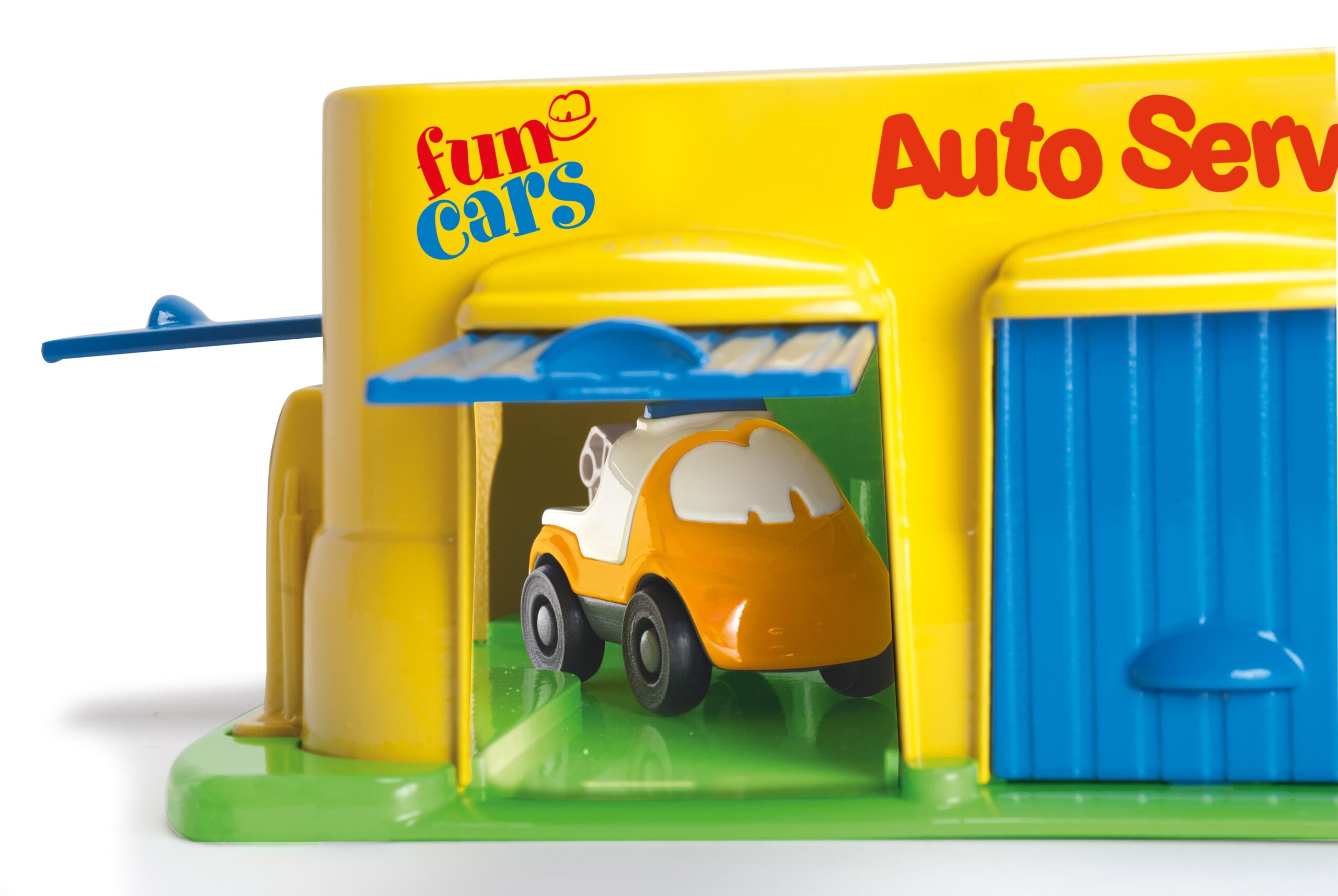 Det är alltid fullt upp när de glada FunCars kör från och till Dantoy-garaget. Portarna är lätta att öppna och bilarna parkeras enkelt på taket. Bygger självförtroende, utvecklar finmotorik, hand-öga-koordination, fysisk utveckling, främjar interaktion mellan barn och vuxna, stärker social kompetens.