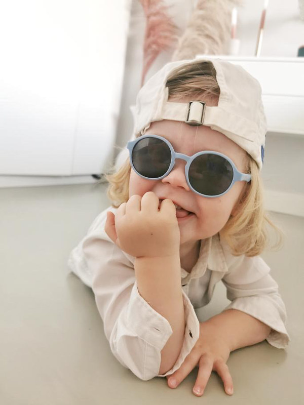 Snygga solglasögon för barn mellan 6-36 mån. Elastiskt band finns med för passform på mindre barn. Snygg förvaring medföljer.