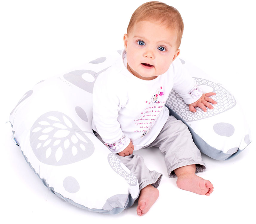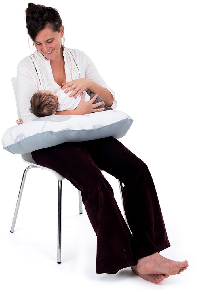 Multifunktionell: Amningskudden kan även användas som ligg- och sittstöd för barnet, vilket underlättar en mångsidig användning.