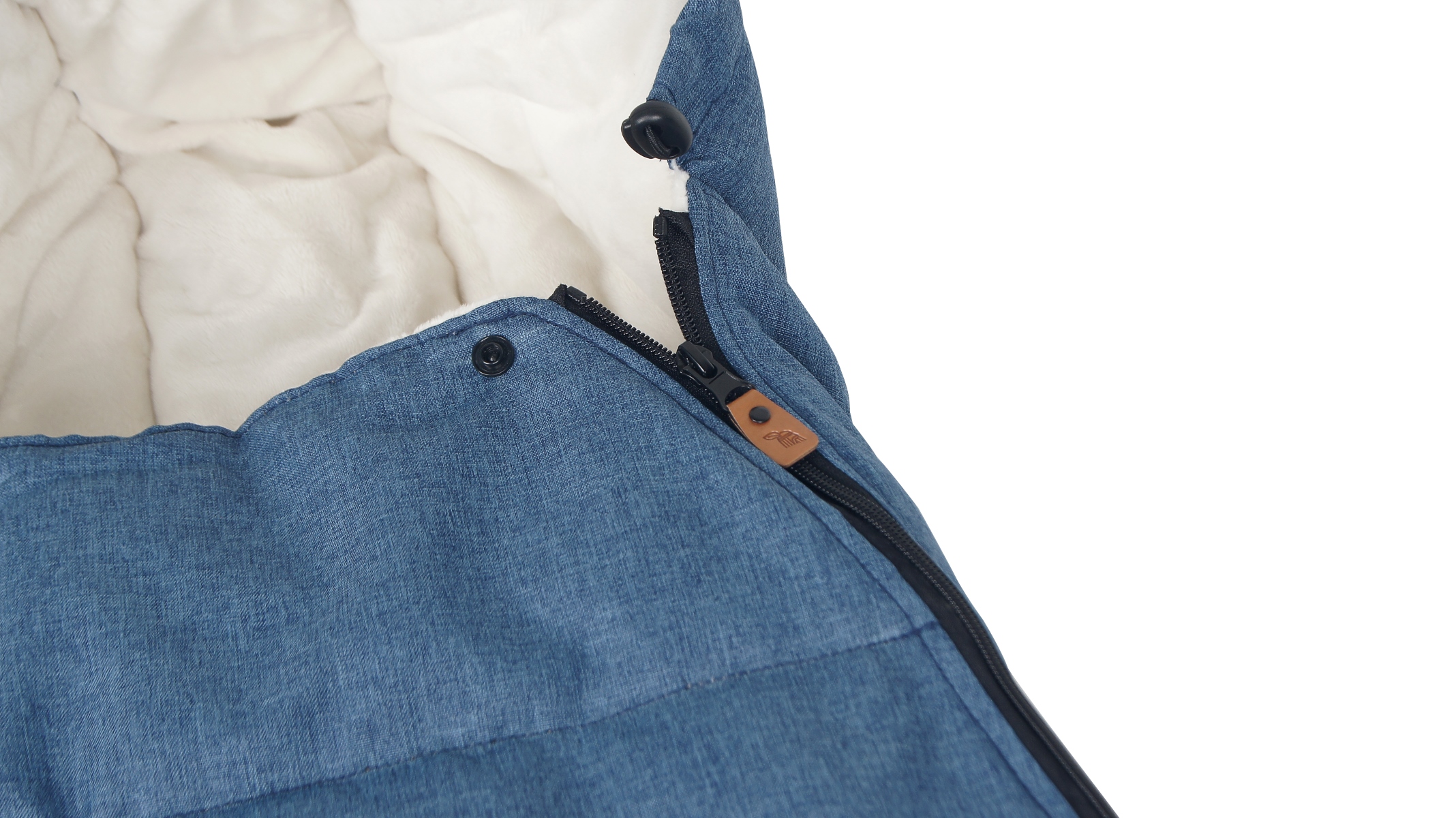 Åkpåse Blue Melange är både stilren, bekväm och skyddande för din bebis. Värmer ditt barn från 3+ grader. Åkpåsen är universal och passar de flesta barnvagnar som finns ute på marknaden. Åkpåsen är utrustad med färdiga öppningar för barnvagnens säkerhetssele och läderdetaljerna är gjorda av veganskt läder.