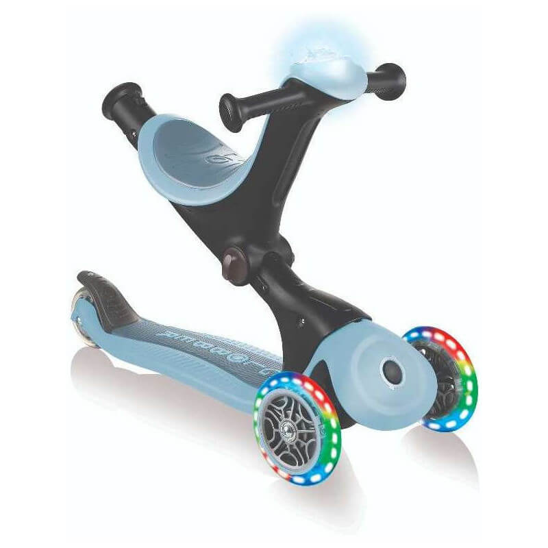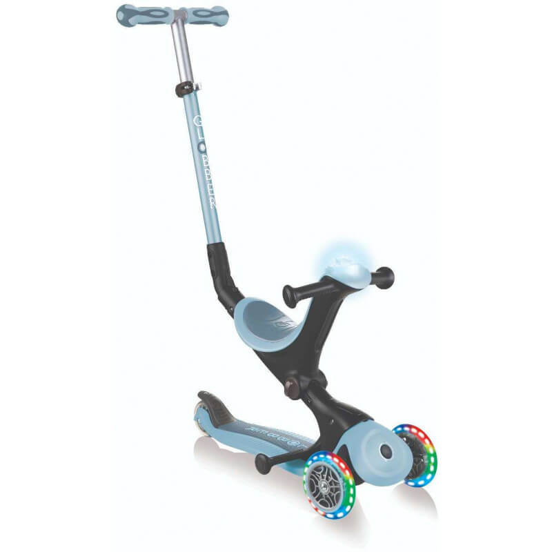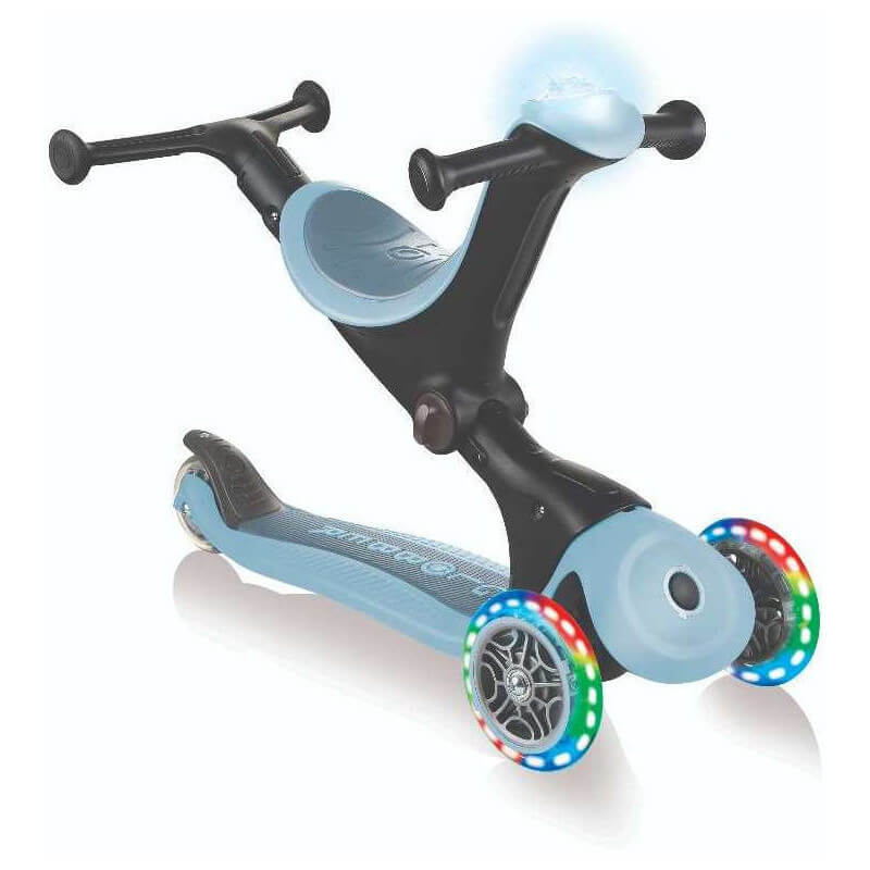 GO•UP DELUXE PLAY är en 3-hjulig skoter med säte för småbarn och barn som förvandlas till en åkande, promenadcykel och småbarnsscooter. Åk- och gångcykellägen är designade för småbarn i åldern 15-36 månader och skoterläge rekommenderas för barn i åldern 3-9+.