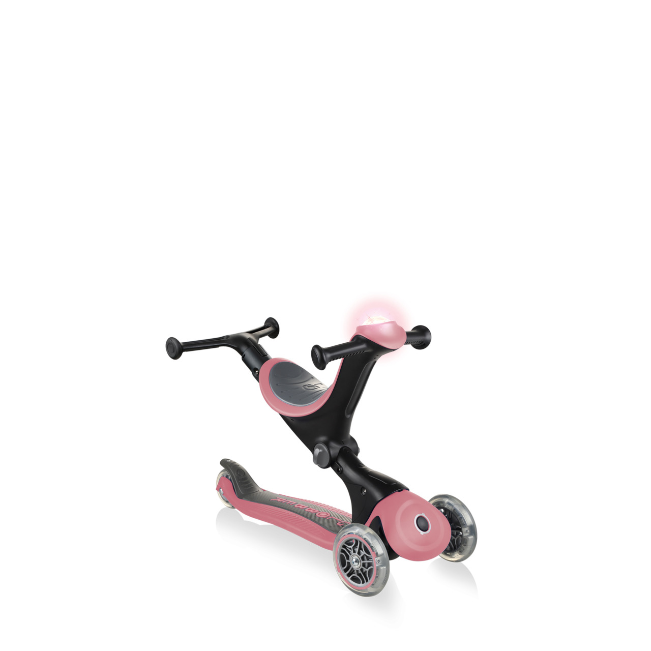 GO•UP DELUXE PLAY är en 3-hjulig skoter med säte för småbarn och barn som förvandlas till en åkande, promenadcykel och småbarnsscooter. Åk- och gångcykellägen är designade för småbarn i åldern 15-36 månader och skoterläge rekommenderas för barn i åldern 3-9+.