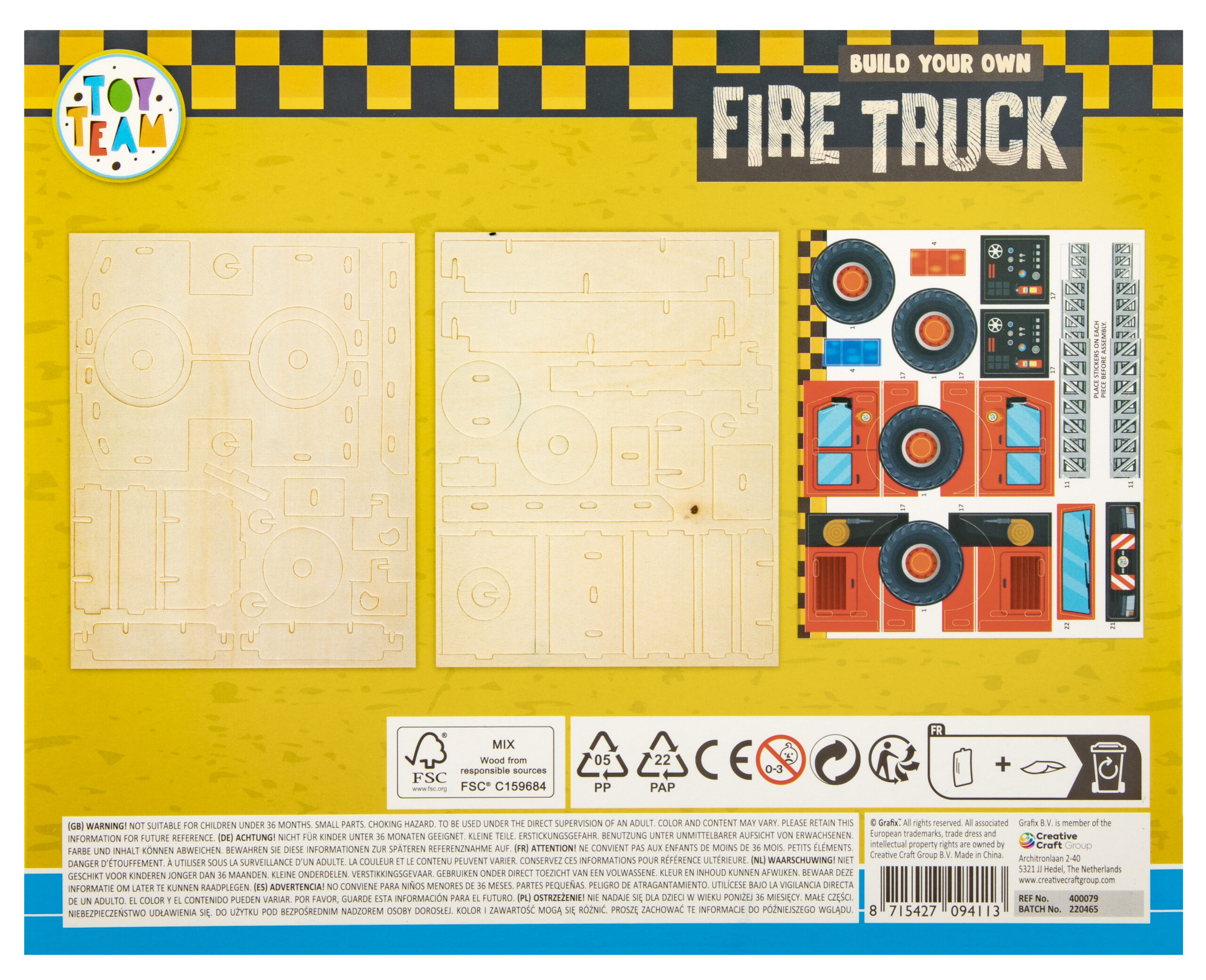 Bygg ditt eget trä 3D-fordon Brandbil inklusive klistermärken.