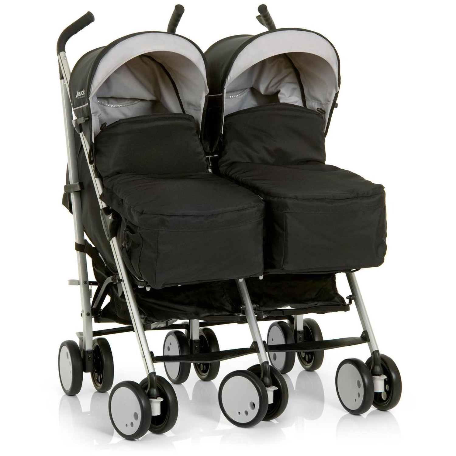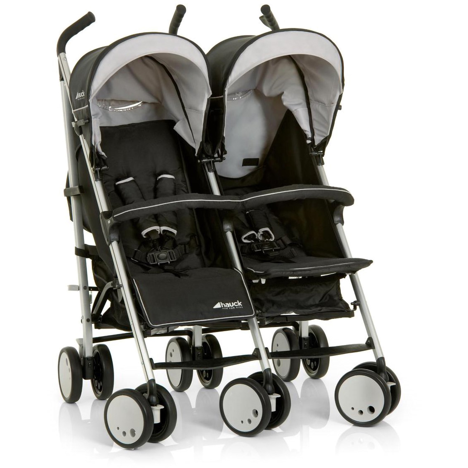 Hauck Torro Duo Buggy är en stilren och praktisk barnvagn som är perfekt för tvillingar eller syskon i olika åldrar. Med sin smidiga design och 360° svängbara hjul är vagnen lätt att manövrera, även när båda sittplatser är upptagna.