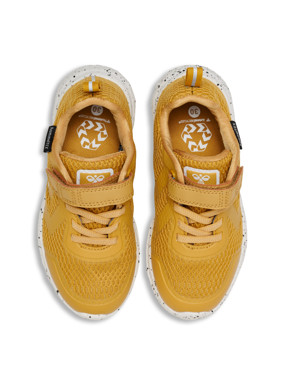 Med klippbar kardborrestängning, slitstarka elastiska snören och en EVA-yttersula, är dessa hummel®-sneakers både bekväma och praktiska. Hälfliken underlättar på- och avtagning, medan de ikoniska hummel-sparrarna ger skorna en stilfull look som barnen kommer att älska.