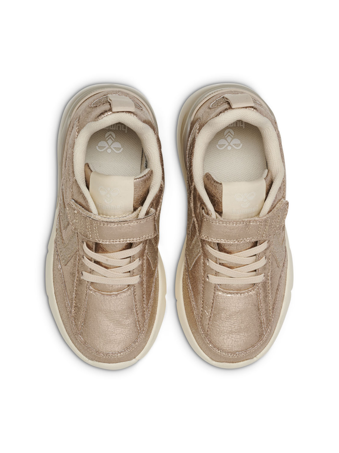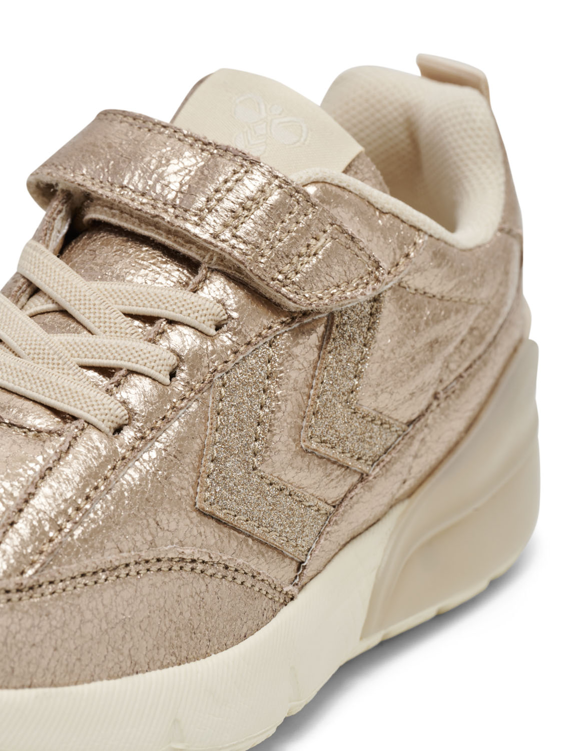 Mesh- och syntetisk mocka-ovandelen inte bara ger andningsförmåga utan även en touch av glamour med sin glittrande finish. Oavsett om ditt barn är ute på en promenad eller springer runt håller dessa sneakers dem svala och moderiktiga.