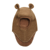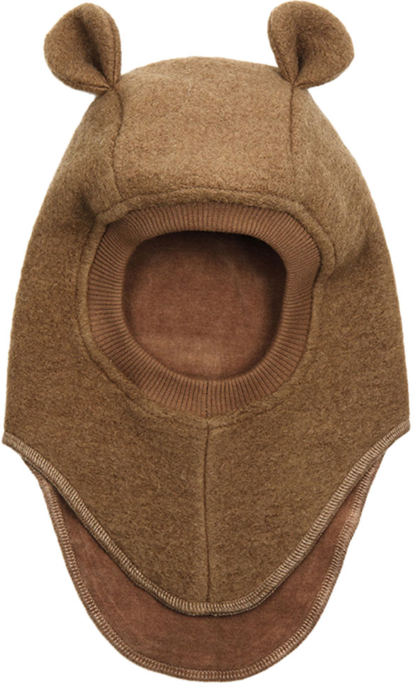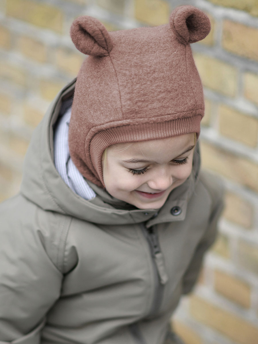 Fin Huttelihut elefantmössa i fläckig bomullsfleece. Huttelihuts elefantmössa har en rund huvudform med två teddyöron upptill. Hatten har 2 lager. Det yttre lagret består av ett kraftigt lager filtbomull. Insidan består av mjuk bomullvelour. I ansiktsöppningen finns en räfflad kant och elefantmössan har en praktisk delad design med extra längd baktill.