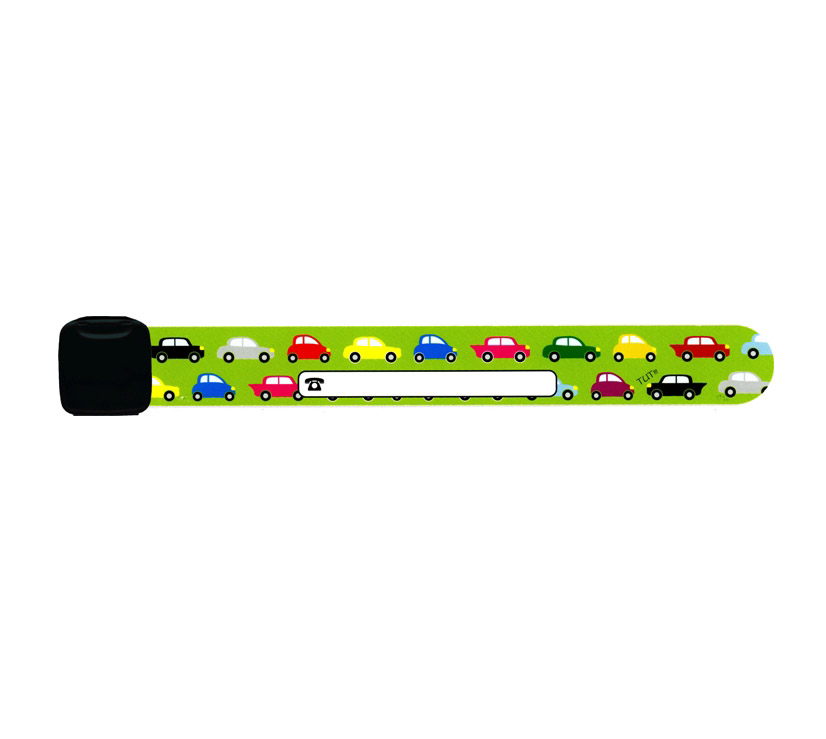 Infoband. Plats för namn och telefonnummer. Vattentåliga, även med vanlig bleckpenna.