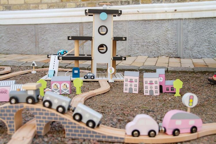 Ett roligt och coolt parkeringsgarage i trä för alla biltokiga barn. Starta helikoptern och landa den på helikopterplattan som ligger överst på garaget. Tävla med dina vänner och se vem som kommer först ner från rampen. Kör vidare och tanka bilen och ta hissen upp igen. Med detta roliga parkeringsgarage kommer ditt barn roa sig i timmar! Till parkeringsgaraget ingår det 3 bilar samt 1 helikopter.
