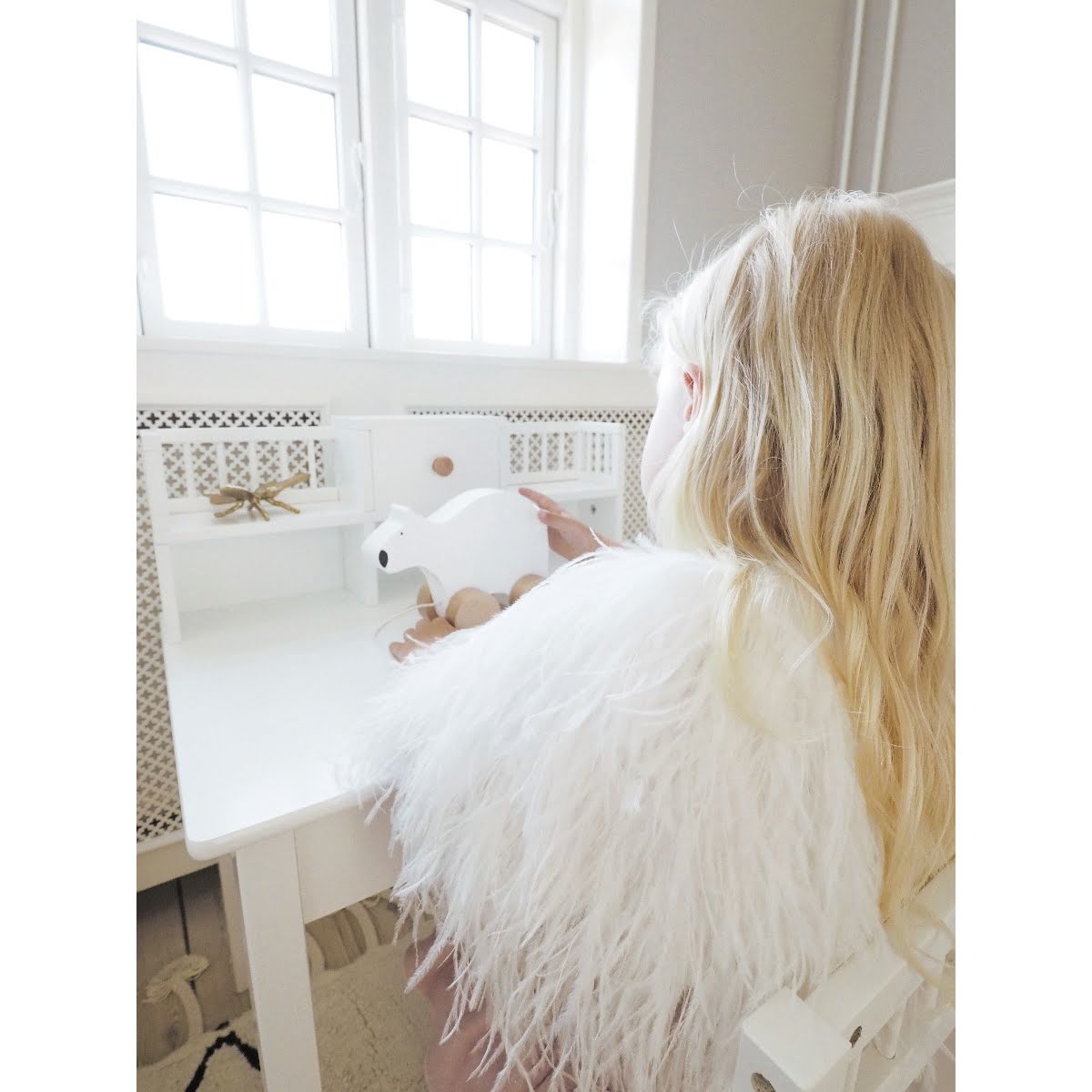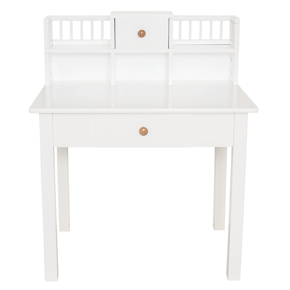 Skrivbord för alla kreativa och pyssliga barn. Skrivbordet har gott om plats för barnet att rita och syssla med sin hobby med smart förvaring för tex pennor och block. Skrivbordet är utrustat med 3 fack, 2 hyllor samt en liten och en större låda med plats för A4 papper. Passar för barn i åldern 2-5 år
