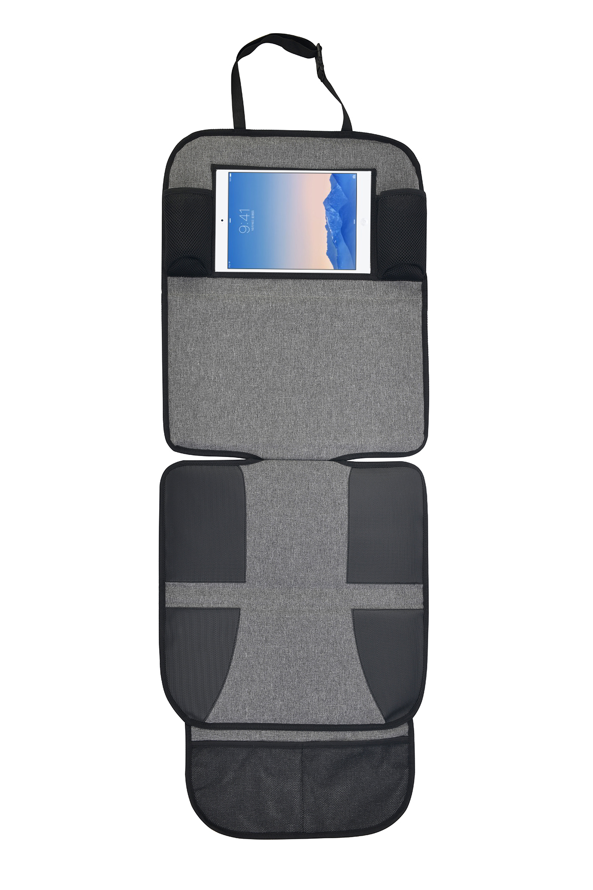 Det extra tjocka bilstolskyddet har en särskilt designad iPad-ficka, perfekt för att förvara en surfplatta. Dina passagerare kan njuta av att se filmer eller använda appar under längre bilfärder, vilket gör resan mer underhållande och avkopplande för alla.