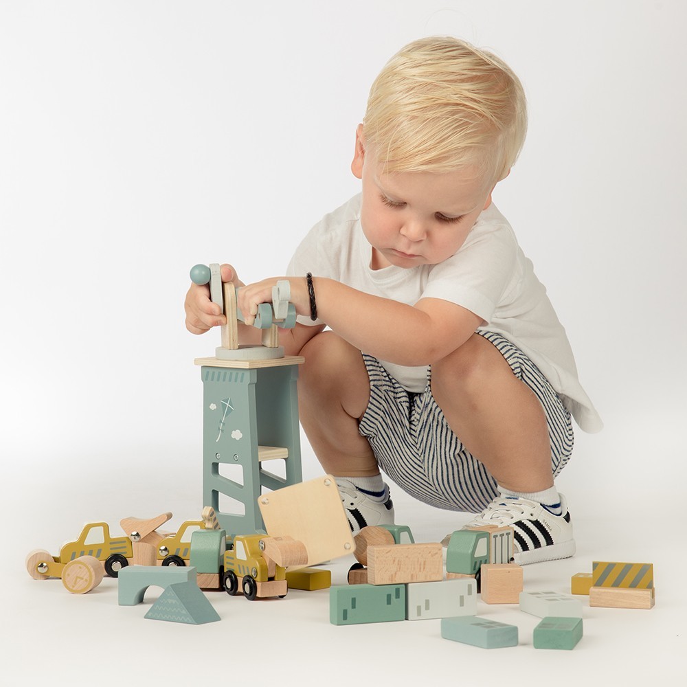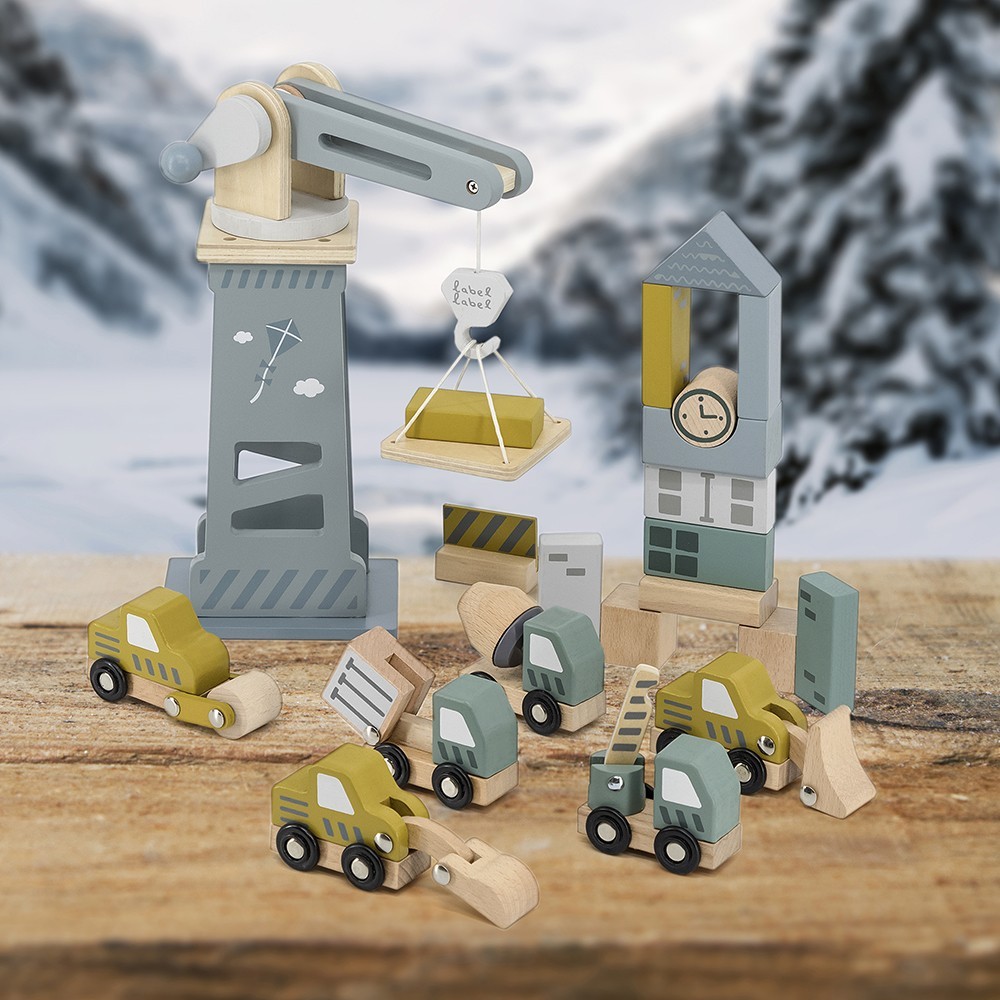 Byggarbetsplatsen är tillverkad av högkvalitativt FSC-certifierat bokträ, plywood och MDF, och är dekorerad med barnvänlig vattenbaserad färg.