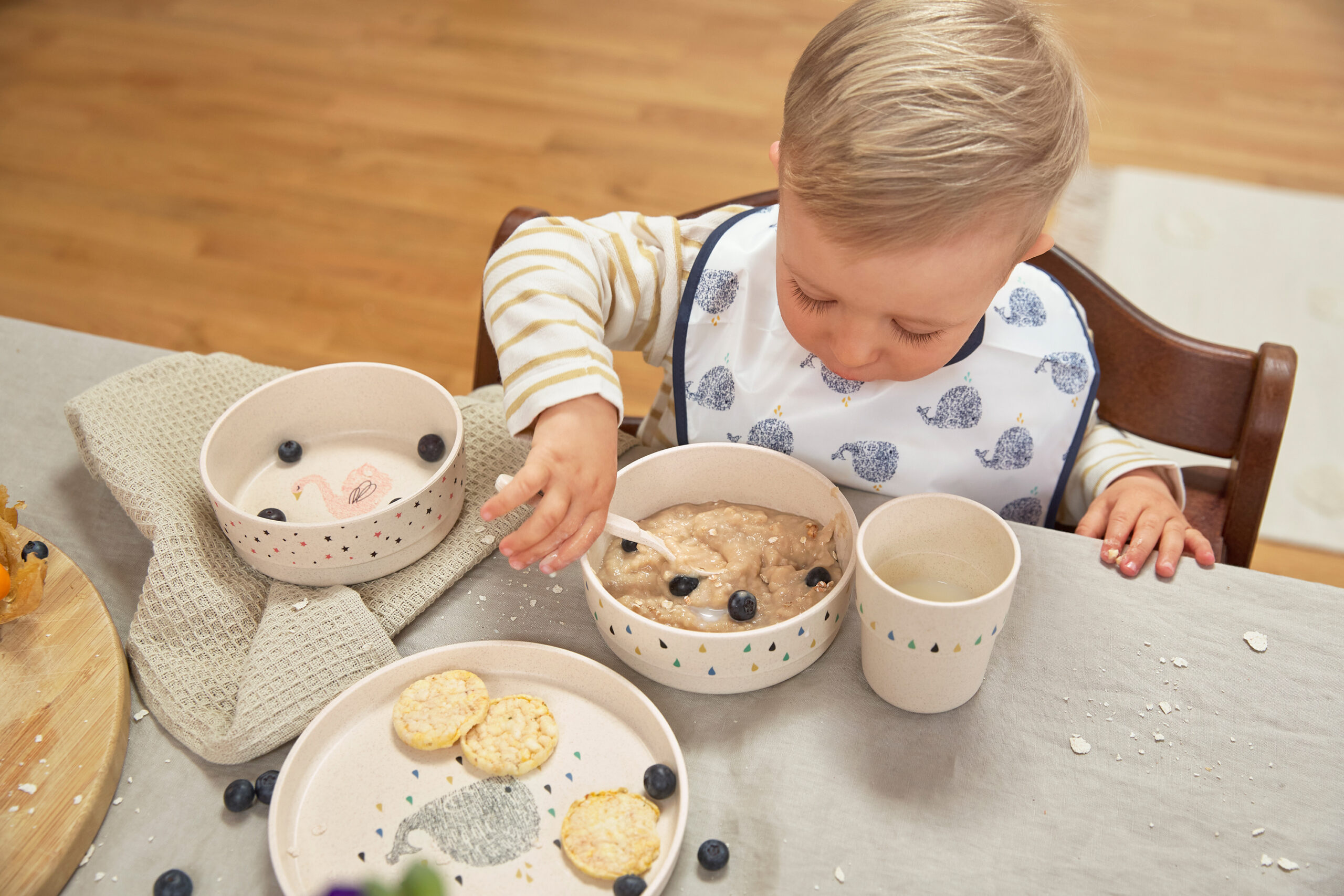 LÄSSIGs servisset Little Water är idealiskt för små från 12 månader och uppåt och övertygar med sin funktionalitet, vackra design och hållbara material. Barnservisset är BPA-fritt, lätt och tål diskmaskin och mikrovågsugn.