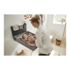 Skötbordets skötmatta är tillverkad av ett mjukt material som efterliknar känslan av hud och anpassar sig till rummets temperatur. Detta ger en behaglig och trygg upplevelse för barnet vid blöjbytet, samtidigt som mattan är enkel att rengöra och desinficera. För rengöring räcker det med en fuktig trasa och mild tvål, och för desinfektion kan en trasa med 70% alkohol användas.