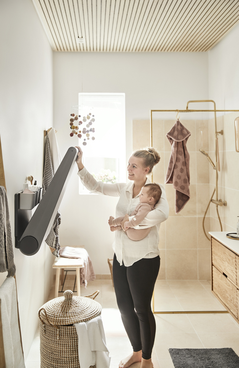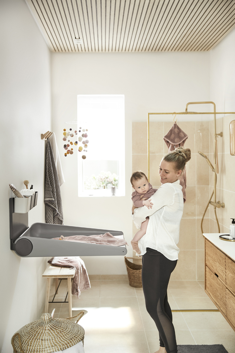 Leander Wally™ är ett modernt och väggmonterat skötbord som erbjuder en elegant, platsbesparande lösning för småbarnsföräldrar. Inspirerad av en svävande vattendroppe, är dess design både stilren och funktionell, vilket gör den till ett perfekt val för det moderna hemmet. Skötbordet kan enkelt fällas ner för användning och sedan smidigt vikas upp mot väggen när det inte används, vilket sparar värdefull plats i rummet.
