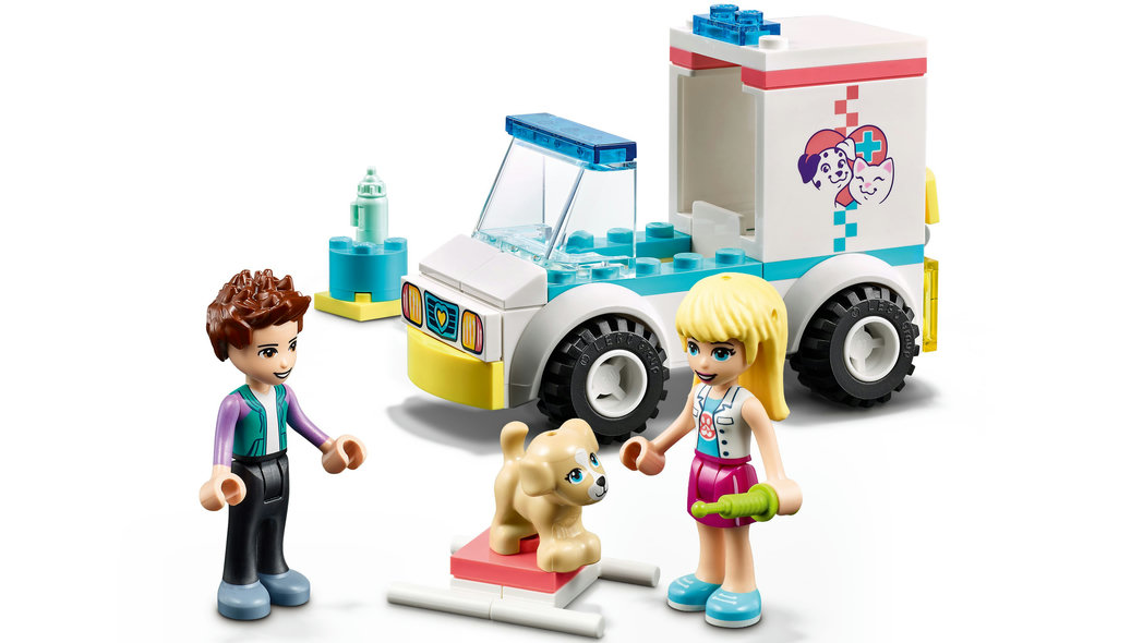 • Fantasifulla tillbehör – Setet är enkelt att bygga och innehåller LEGO® Friends Stephanie och Ethan, en leksakshund och en ambulans för barn som älskar djurskötslellekar