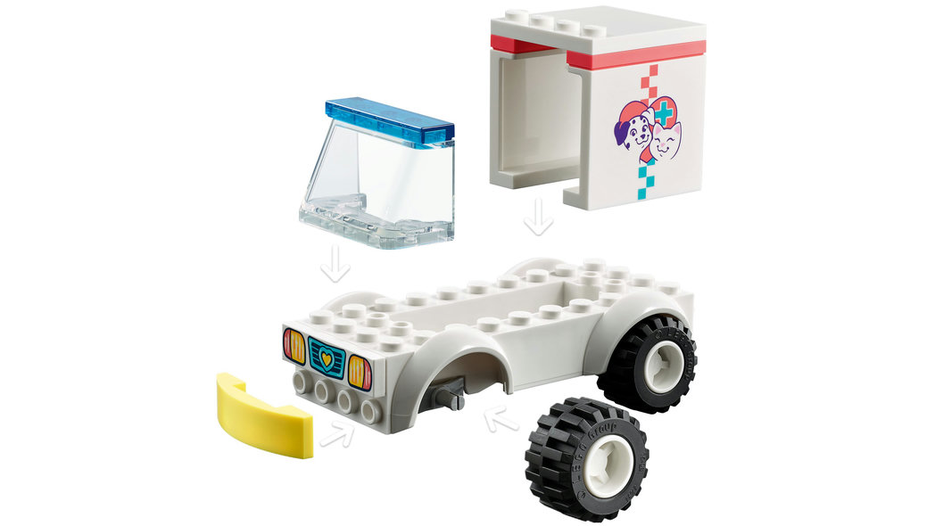 - • Bygg, lek och vårda – Det prisvärda leksetet LEGO® Friends Djursjukhusets ambulans lär barn från 4 år att bygga samtidigt som de uttrycker sin kärlek till djur när de tar hand om en sjuk valp