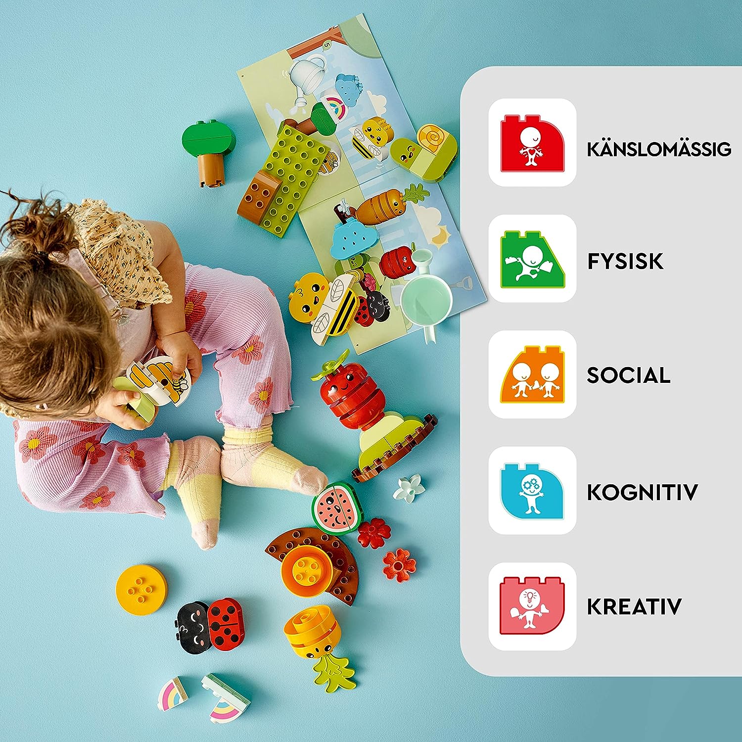 • Pedagogiska leksaker för små barn – Med leksaken LEGO® DUPLO® Min första ekologiska trädgård får förskolebarn från 18 månader lära sig om natur, djur och hur grödor växer i trädgården