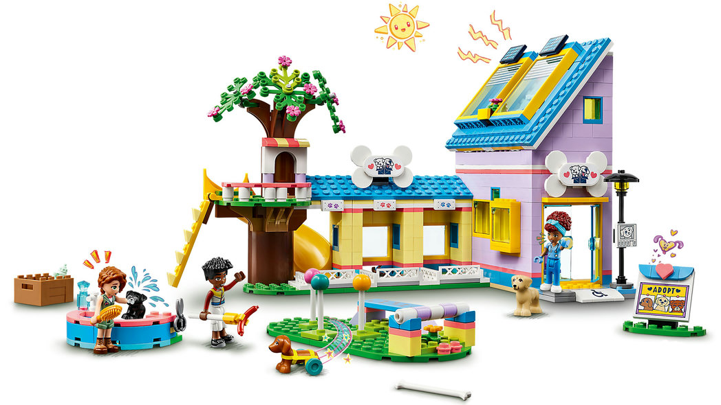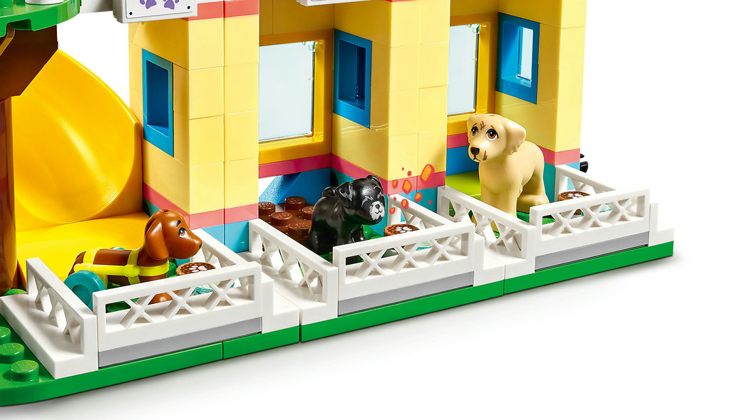 Små hundälskare från 7 år kommer att ha massor av skoj när de skapar sina egna valpinspirerade berättelser med leksaken LEGO® Friends Hundräddningscenter. Setet innehåller allt barn behöver för att ta hand om valparna som väntar på att bli adopterade. Djurälskaren Autumn vet att hennes vän Zac också älskar hundar, så hon har bjudit med honom. Barn kommer att älska att hjälpa karaktärerna att bada, borsta och mata hundarna. Dessutom finns massor av platser för lek, som ett träningsområdeoch en rutschkana. Den modulära stilen låter barn flytta hundgården och receptionsbyggnaden för att göra räddningscentret till sitt eget.