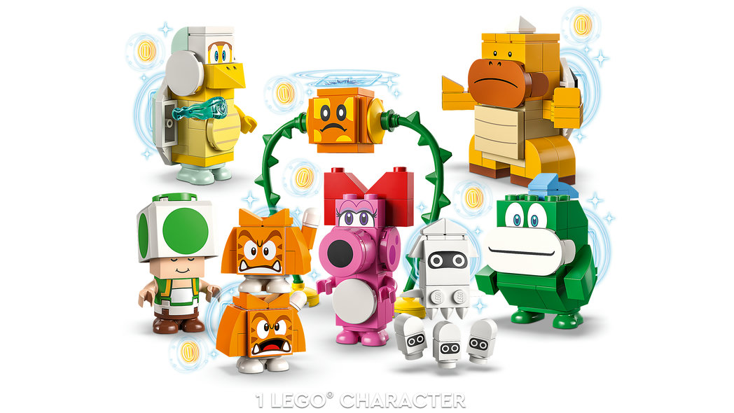 • Bygg unika banor – Lägg till dessa karaktärer i LEGO® Super Mario™ startbanorna och expansionsseten för att skapa nya utmaningar för spel på egen hand eller i grupp