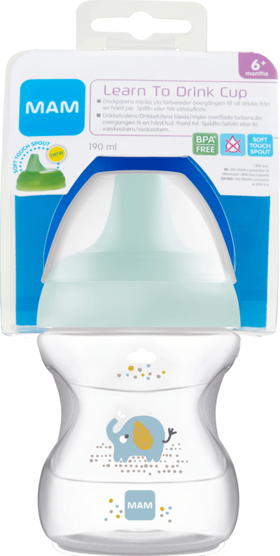 Nätt mugg med mjuk drickpip, idealistisk när det är dags att övergå från flaska till att dricka själv. Ergonomisk anpassad för små händer.