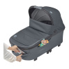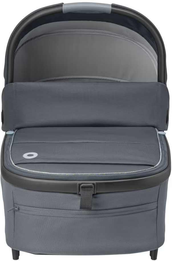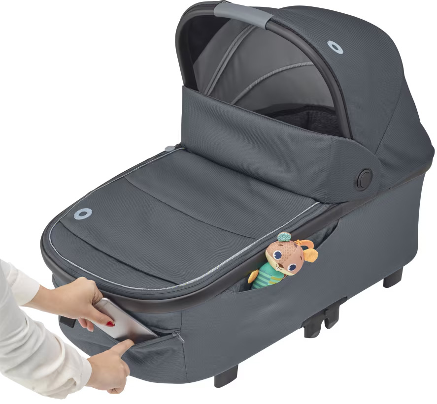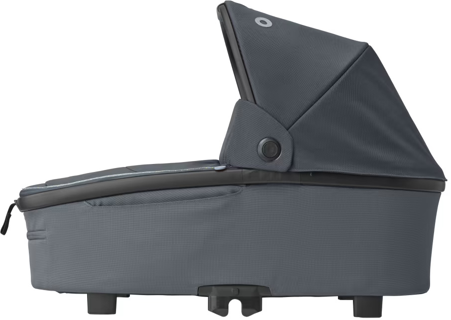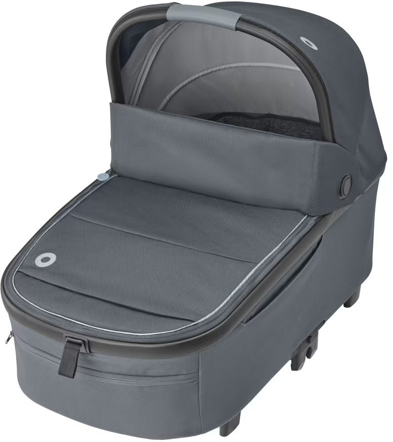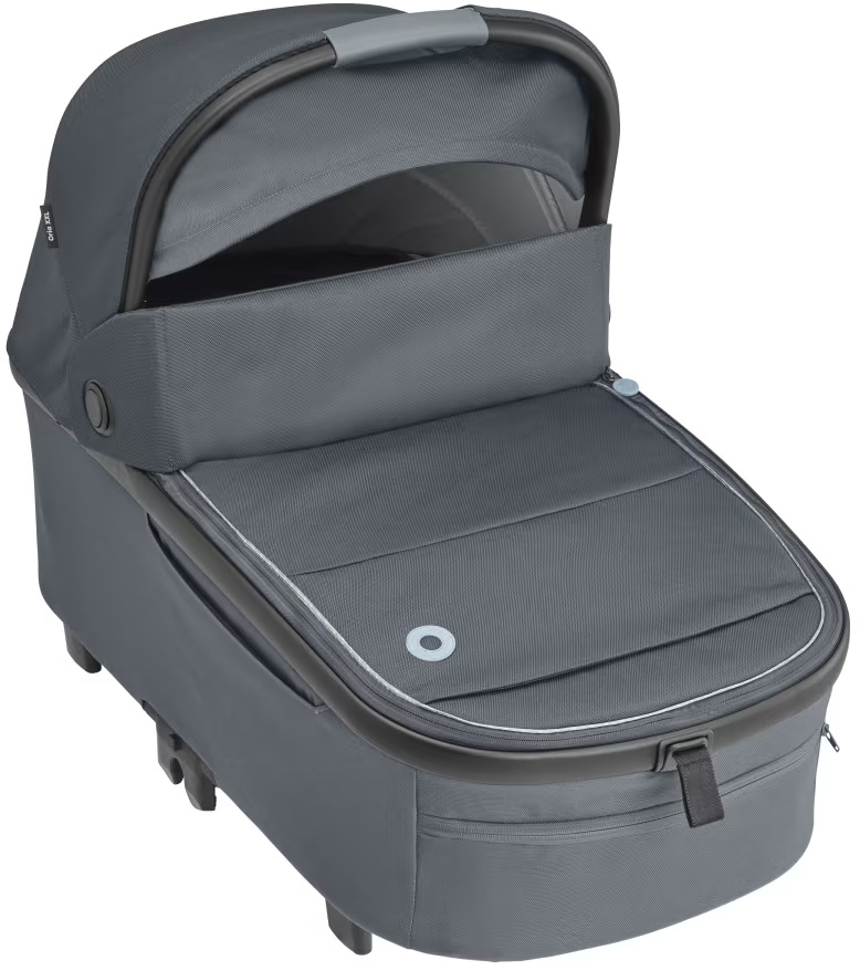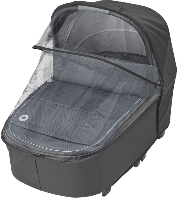 Maxi-Cosi Oria XXL Essential Black är en extra rymlig och bekväm liggdel som kan användas från födseln upp till cirka 9 månader, eller tills barnet når 80 cm och 9 kg. Den har en mjuk och extra vadderad madrass som ger hög sovkomfort och en vilofunktion som gör det möjligt att luta barnet något för bättre utsikt. Suffletten har UPF50+ och är utrustad med tittfönster samt en utfällbar del som skyddar mot sol och insekter. För regniga dagar ingår ett regnskydd. Liggdelen är lätt att hantera tack vare sin låga vikt på 4,46 kg och det integrerade bärhandtaget i suffletten. Smarta och lättåtkomliga fickor gör det enkelt att förvara småsaker, och den kan fällas ihop för kompakt förvaring. Oria XXL är kompatibel med Maxi-Cosi Lila XP och flera andra Maxi-Cosi barnvagnar via adaptrar, och kan fästas eller tas bort med bara ett par klick.