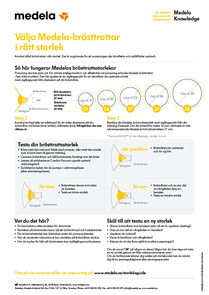 Innehåller två stycken brösttrattar som är 21 mm, storlek Small. Valet av brösttrattsstorlek är avgörande för lyckad pumpning. Brösttratten är kompatibel med Medelas bröstpumpar Swing Flex, Swing Maxi Flex och Freestyle Flex.
