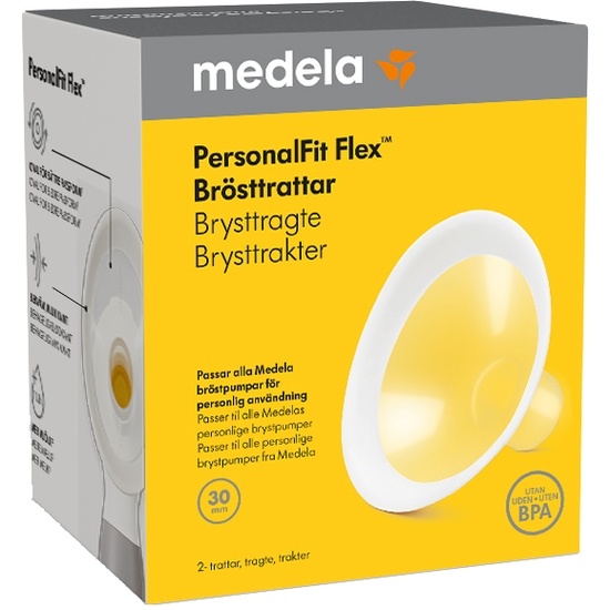 Medela PersonalFit Flex är en brösttratt som har en mjuk kant, vid öppningsvinkel och oval form som kan roteras 360°, för en bekvämare pumpning och optimerad mjölkproduktion. Formen på dina bröst är unik och kan ändras under amningsperioden. Med denna brösttratt kan du enkelt anpassa bröstpumpens passform så att det blir lättare att hitta den mest bekväma och effektiva pumpningspositionen.