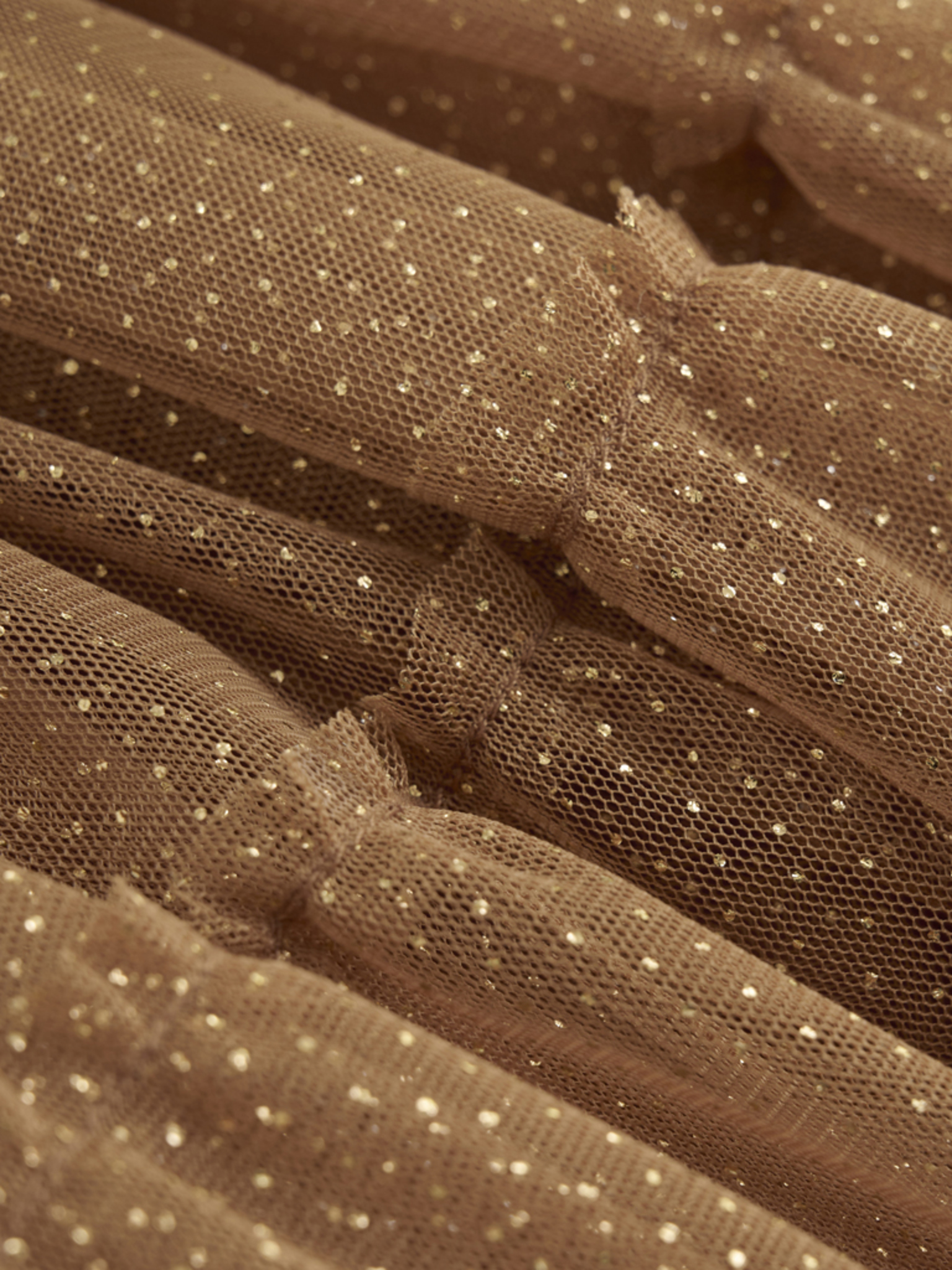 Denna fina meshkjol från Minymo är perfekt för festliga tillfällen. Kjolen är tillverkad av 100% polyester och har flera lager av meshtyg med glittrande prickar på det översta lagret. En fin volangkant mitt på kjolen ger en extra detalj som lyfter utseendet. Det breda elastiska midjebandet säkerställer en bra passform och ger en elegant look.