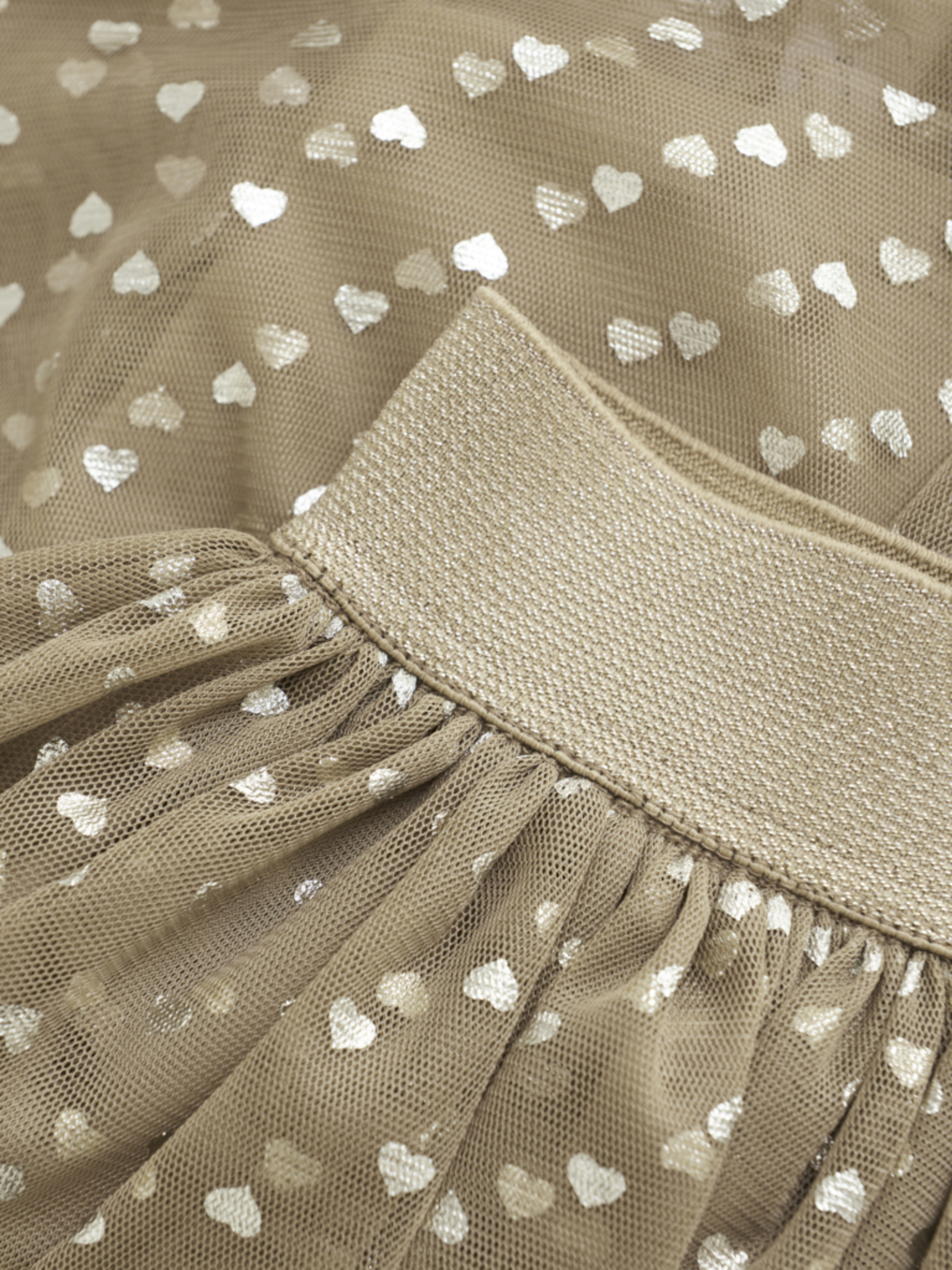 Kjolen kombinerar en stilfull design med komfort, vilket gör den idealisk både till vardags och för speciella tillfällen. Den eleganta glittriga midjan och hjärtmönstret på toppen ger en extra dimension till outfiten.
