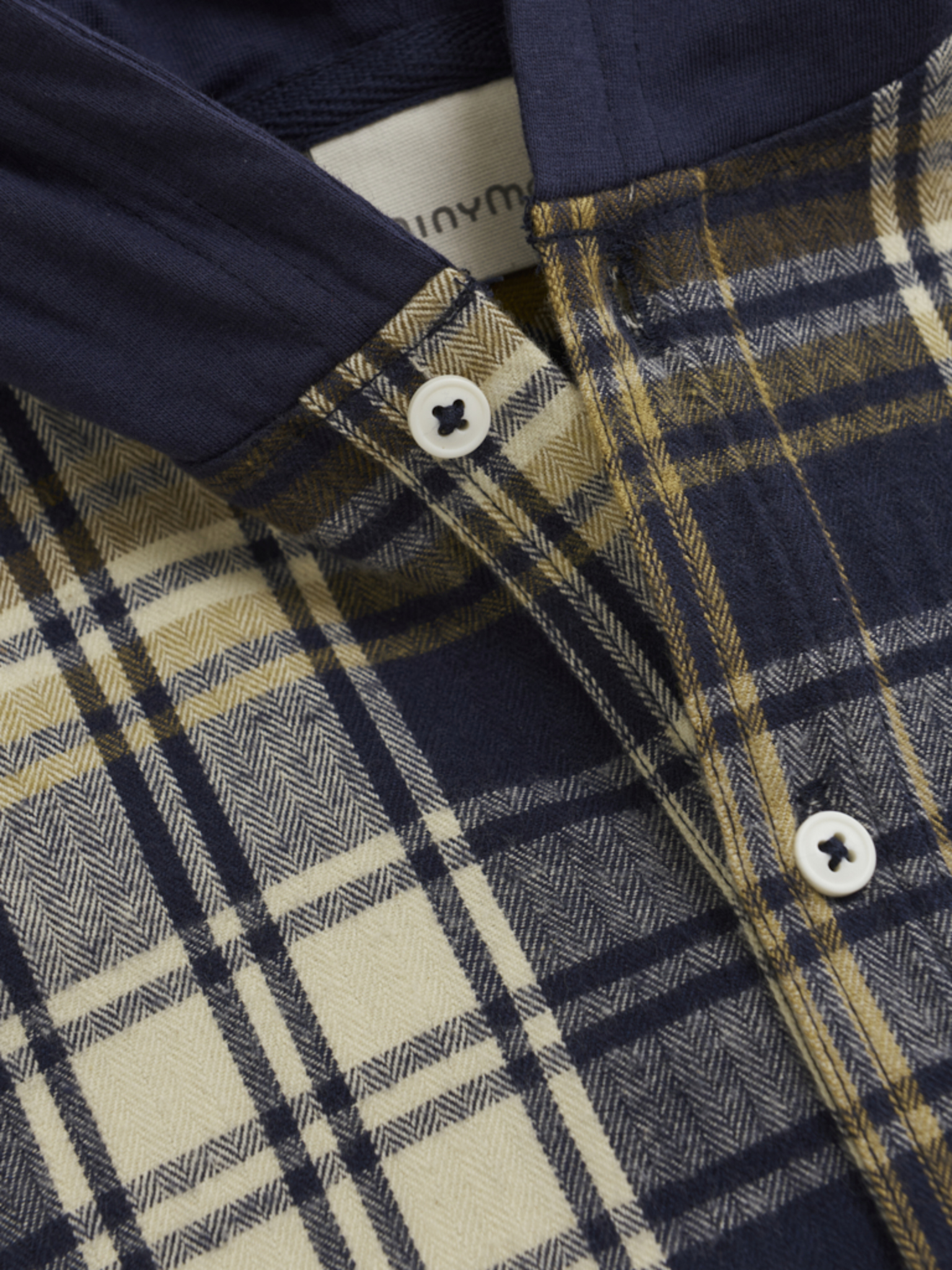 Denna coola rutiga skjorta med huva från Minymo kombinerar stil och komfort på ett unikt sätt. Skjortan är tillverkad i 100% bomull och har en klassisk, rutmönstrad design med en enkel huva i enfärgat tyg som ger den en avslappnad hoodie-look. På bröstet finns en liten ficka som ger en extra detalj, och skjortan stängs med knappar framtill. Ett perfekt val för vardagsbruk eller när ditt barn vill se både snygg och bekväm ut. Certifierad enligt GOTS – organic CERES-0366 för hållbarhet och miljövänlighet.