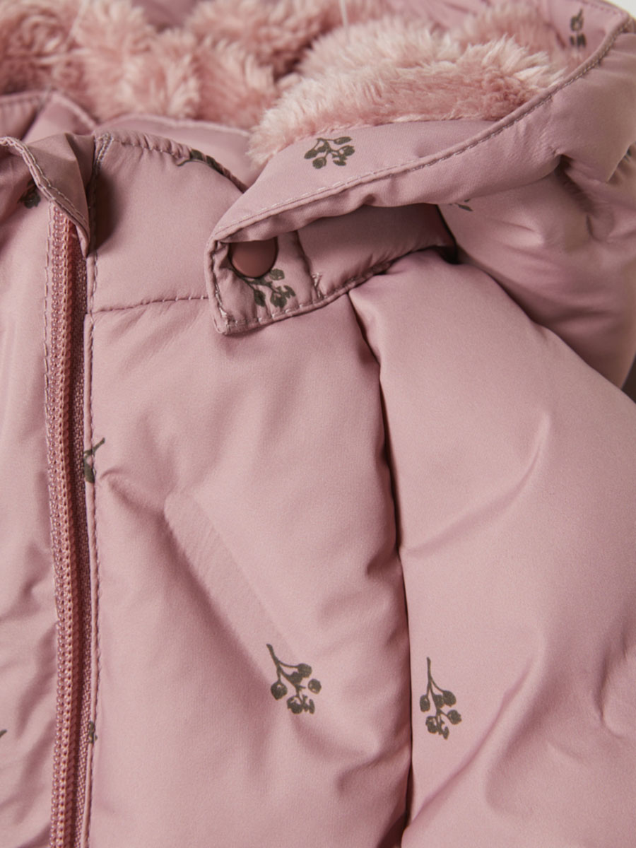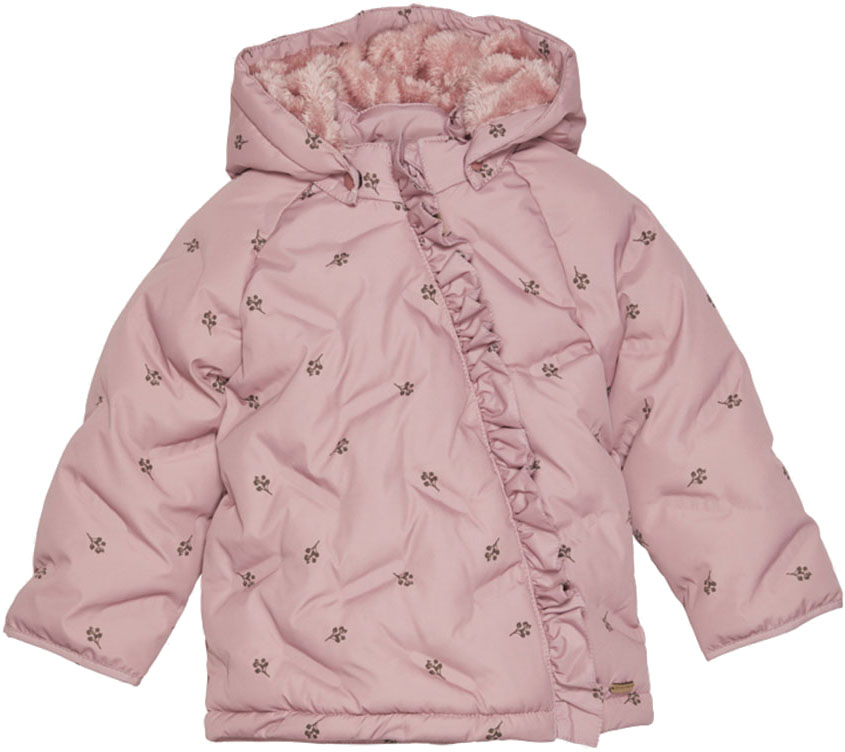 Varm quiltad vinterjacka med all-over tryck för ditt barn från Minymo. Materialet andas och är vattentätt så ditt barn kan vara ute i regn och snö utan att bli kall och blöt. Testat vattenpelartryck på 10000 mm och andningsförmåga på 3000 g.