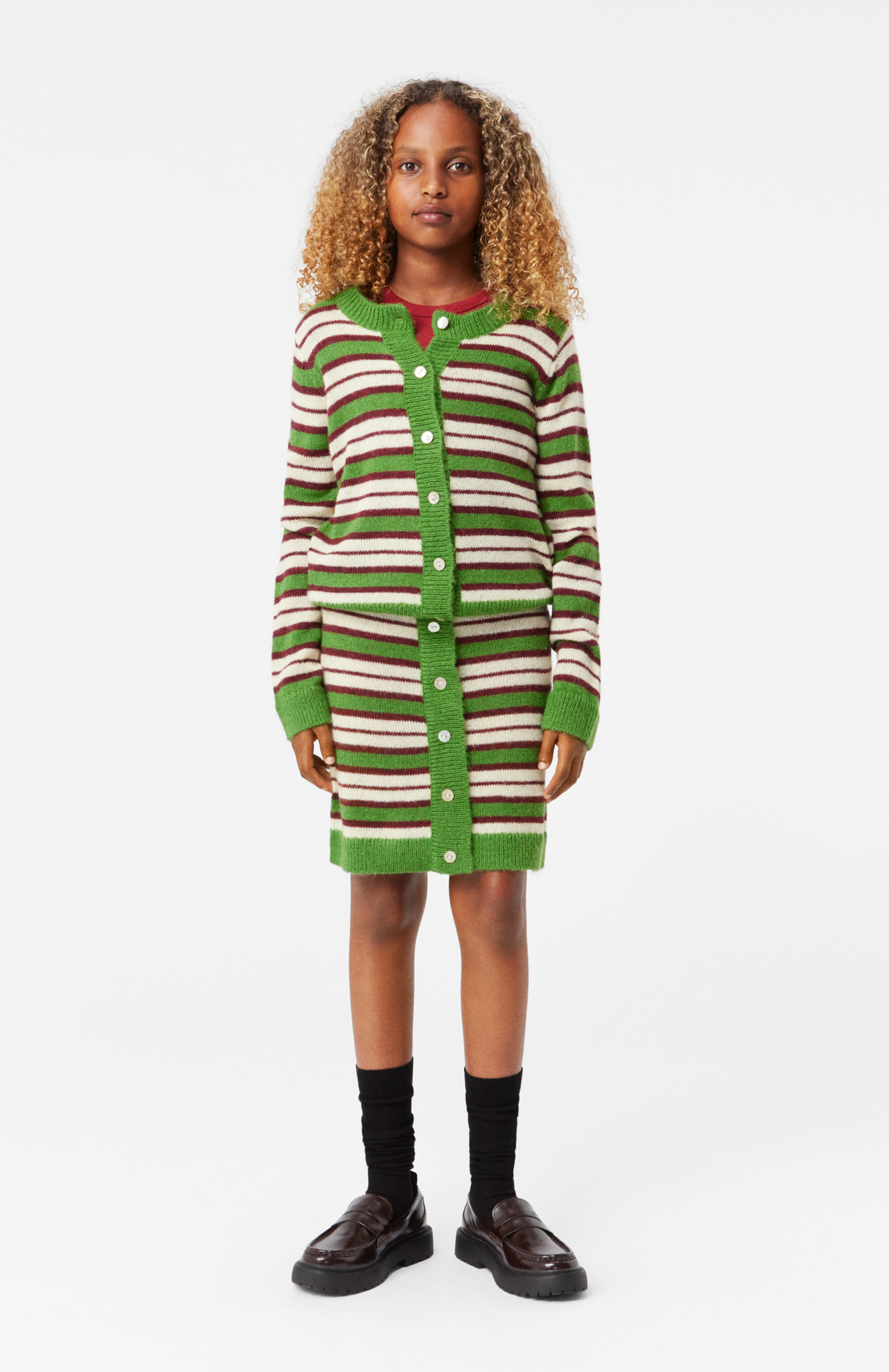 Molo kjol stickad Bea är mångsidig och kan enkelt matchas med olika plagg för att skapa både avslappnade och uppklädda stilar. Denna kjol är idealisk för allt från skoldagar till familjeutflykter och speciella evenemang, vilket gör den till ett pålitligt och stilfullt val i barnens garderob.