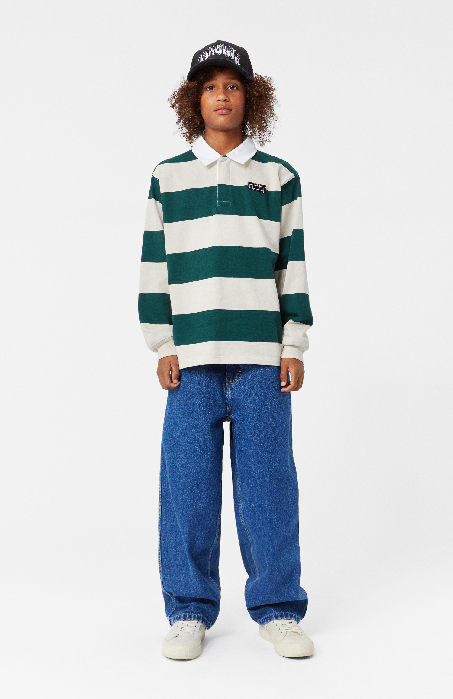 Denna långärmade tröja har en klassisk design med polokrage och eleganta ränder, vilket ger ett stilrent och tidlöst utseende. Tröjan finns i flera storlekar för att passa barn i olika åldrar och erbjuder en bekväm och flexibel passform. Den enkla men stilfulla designen gör att tröjan lätt kan matchas med andra plagg i garderoben.