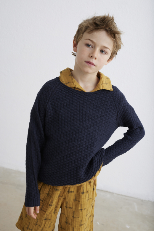 My Little Cozmo Tröja Jacquard Tricot är en utsökt kombination av stil och komfort, designad för att erbjuda både värme och elegans. Tillverkad i Barcelona med stor omsorg för detaljer, bjuder denna tröja på ett jacquardmönster som tillför en subtil textur och sofistikerad känsla. Den är gjord av hållbara material som återspeglar varumärkets engagemang för högkvalitativ och ansvarsfull produktion. Tröjan är inte bara ett modeuttalande, utan också ett val för den miljömedvetna, tack vare användningen av naturliga och ekologiska textilier.