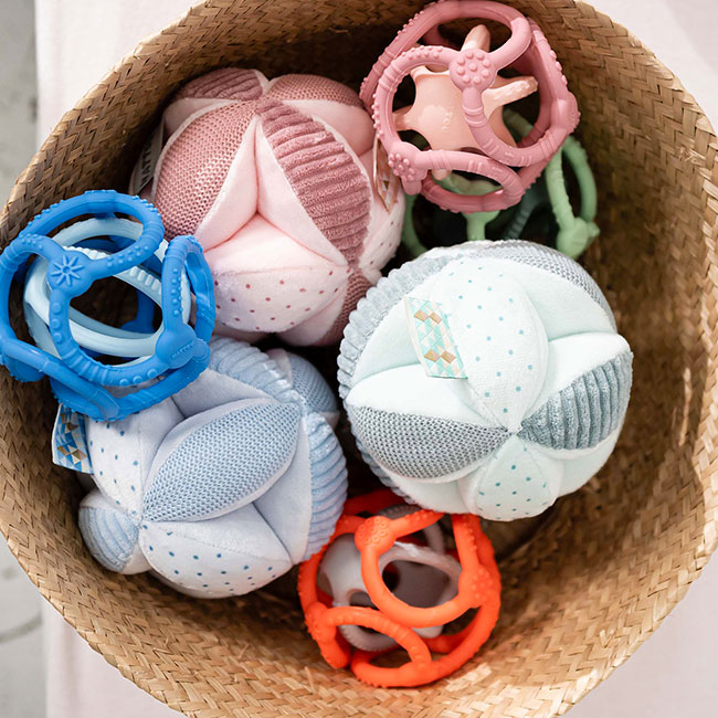 En mjuk aktivitetsboll i plysch med detaljer i bomull som ger barnet taktil stimulans. I bollen finns en skallra, en tuta och prassel som underhåller barnet och stimulerar finmotoriken. Bollen är greppvänlig för små händer och ger oändliga möjligheter till lek och utforskande. Passar från nyfödd