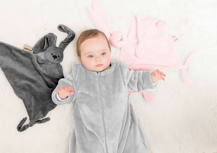 En gosig och mjuk stor snutte. I tygbanden går det även att fästa en napp med ring, så att nappen inte tappas bort.