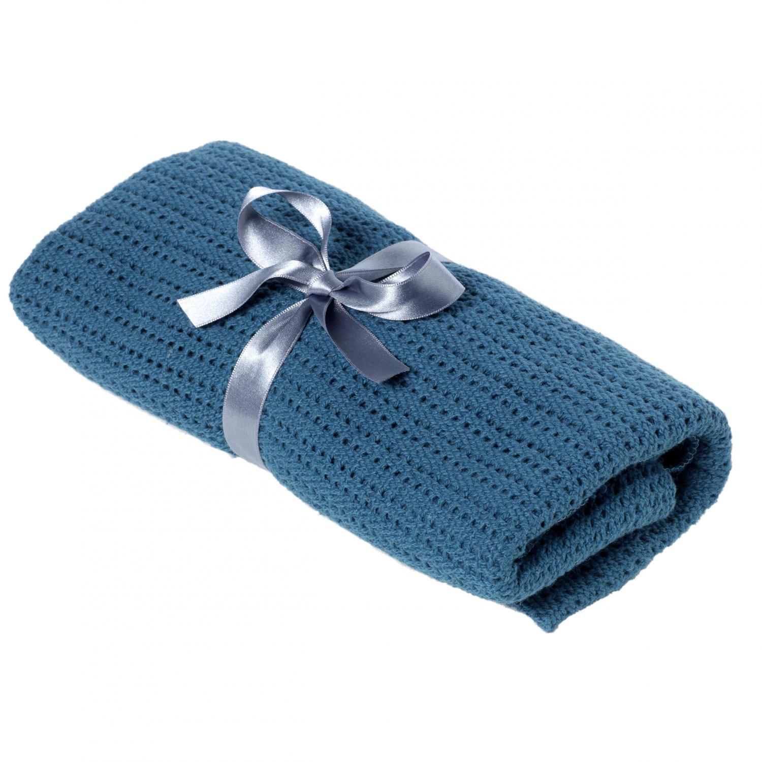 Första filten till nyfödd. Mjuk och härlig babyfilt som finns i flera härliga nyanser. Gallerfilten har små hål som ger bra luftcirkulation så att barnet inte blir för varmt. Filten som har generösa mått passar lika bra i barnvagnen som för mysiga stunder hemma. Den mjuka bomullen är skön och behaglig närmast barnets hud. Perfekt present, till exempel vid en babyshower, då filten levereras med en vacker rosett knuten av ett grått sidenband.